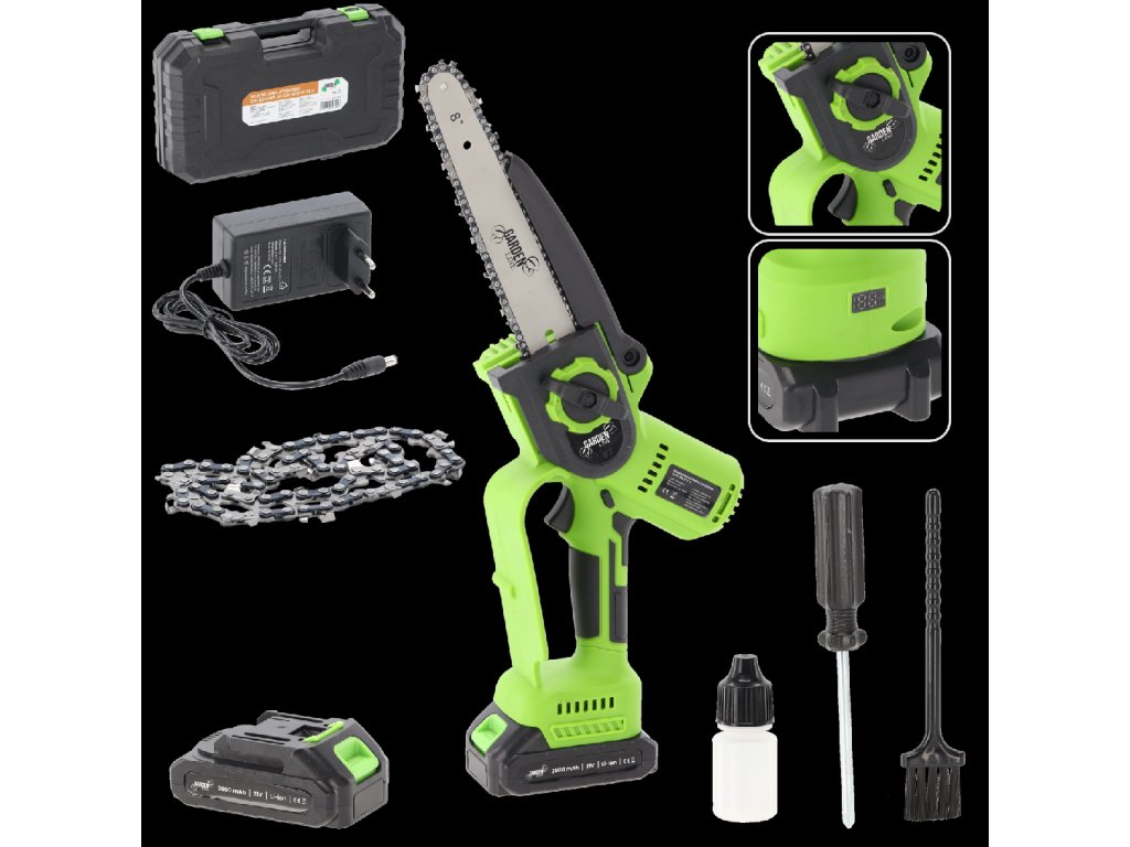 S 20 cm vodiacou lištou a rýchlosťou až 4500 ot/min už žiadna vetva nebude problém. Sada obsahuje všetko, čo potrebujete – od nabíjačky po náhradný reťaz. Je to kompletný balík pripravený na použitie! ⚙️