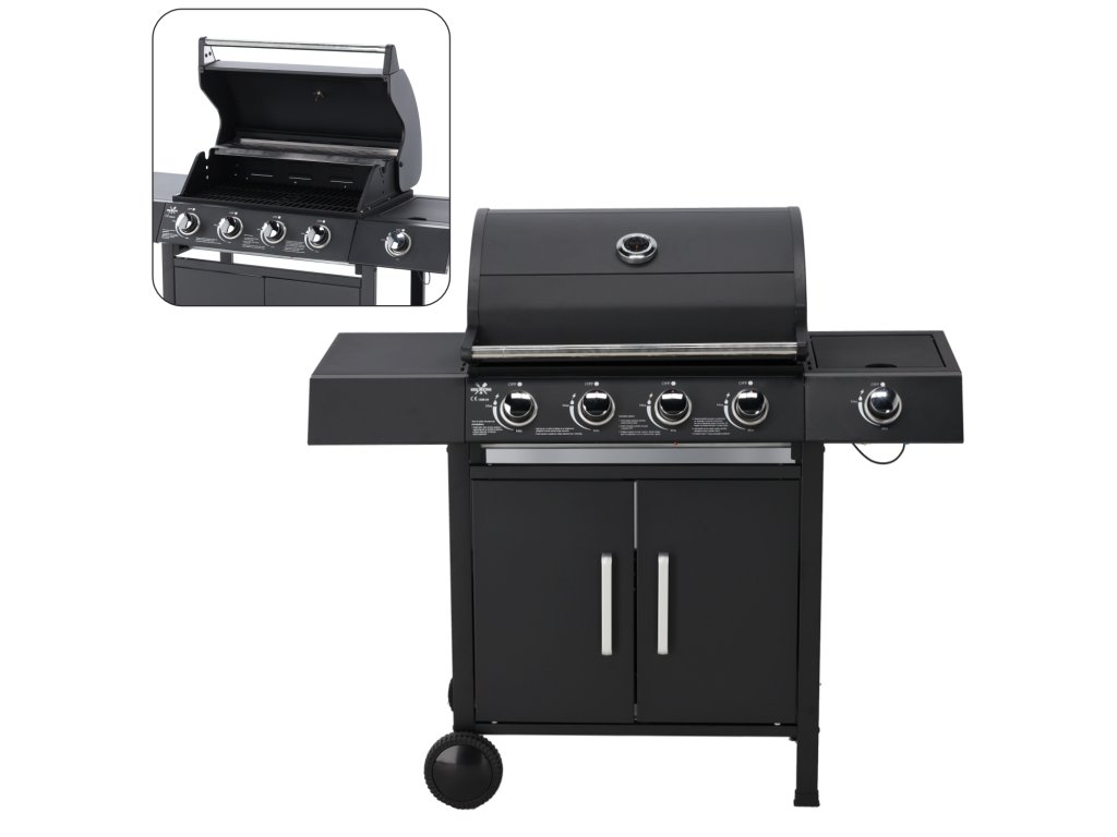 Plynový gril s 4 horákmi a bočným horákom je ideálnym riešením pre milovníkov grilovania. Vďaka veľkej grilovacej ploche, pevným materiálom a dodatočnému bočnému horáku je príprava jedla ešte pohodlnejšia a efektívnejšia.