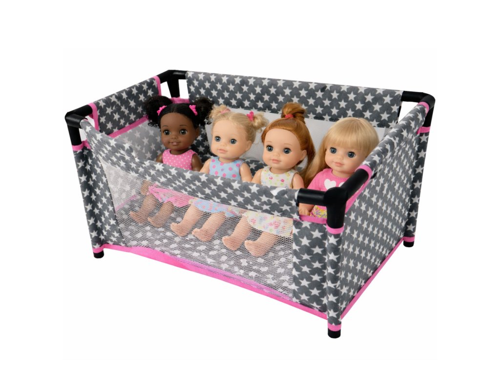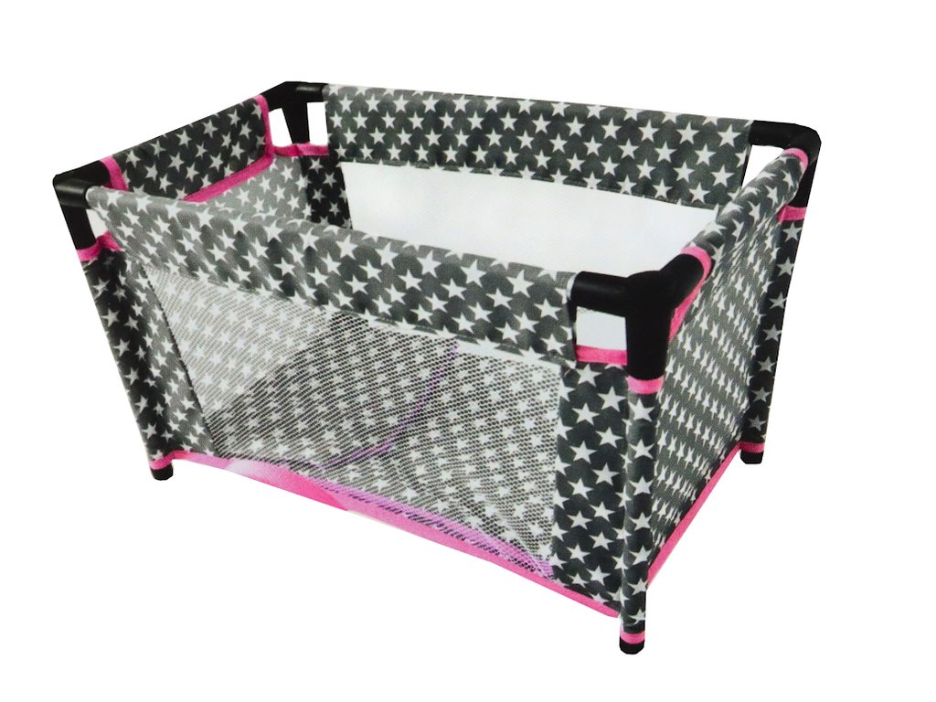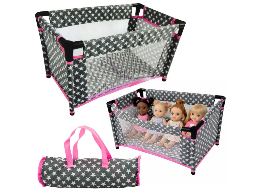Detská postieľka s hviezdičkovým vzorom je funkčný a estetický doplnok na hranie, ktorý deťom umožňuje vytvárať realistické scenáre starostlivosti o svoje bábiky. Starostlivo navrhnutá konštrukcia poskytuje bábike vlastné pohodlné miesto na spanie a dieťaťu umožňuje hrať úlohu starostlivého opatrovníka. Jemná farebná kombinácia odtieňov šedej s bielymi hviezdami a ružovými akcentmi dodáva celému výrobku jemný a dievčenský charakter.