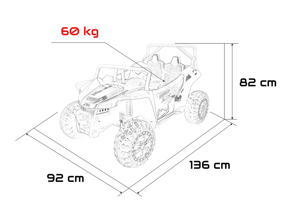 | Rozmery vozidla: | Dĺžka 136 cm,Šírka 92 cm,Výška 82 cm |