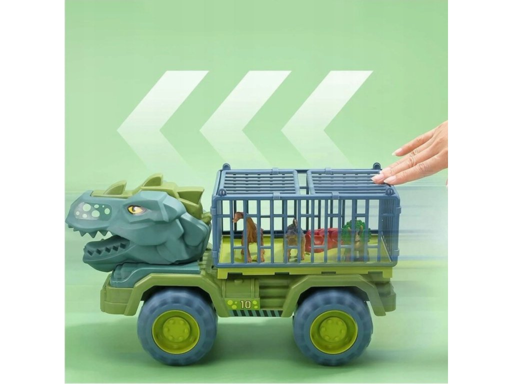 Toto veľké dopravné vozidlo v tvare dinosaura je prepracovaná a pôsobivá hračka určená pre deti, ktoré fascinuje svet prehistorických tvorov a vozidiel. Robustný nákladný automobil slúži ako praktický transportér pre dinosaury, ktorý umožňuje ich bezpečnú prepravu, pohodlné uloženie všetkého príslušenstva a vytvorenie mnohých rôznych a kreatívnych herných scenárov.