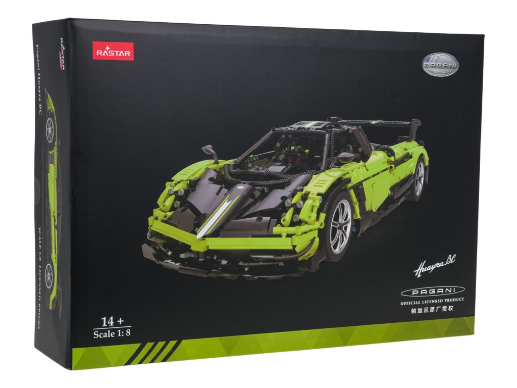 | Špecifikácia | Model auta od renomovanej značky RASTAR, vyrobený s maximálnou pozornosťou k detailom. Vozidlo je vyrobené z vysoko kvalitného ABS plastu a komponentov najvyššej kvality. Auto je vernou reprodukciou skutočného vozidla Pagani. Interiér vozidla má detailné vyhotovenie. Sada sa skladá z 2892 dielov. |