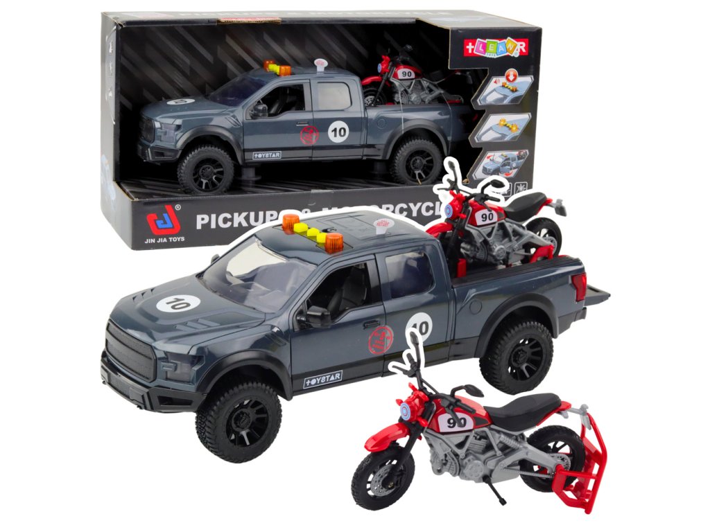Tento veľký model pickupu s motorkou je ideálnou hračkou pre deti, ktoré milujú terénne vozidlá, realistické detaily a interaktívnu hru. Vozidlo bolo navrhnuté s ohľadom na najmladších motoristických nadšencov a ponúka rad funkcií, ktoré vylepšujú hru a stimulujú predstavivosť. Auto má otváracie dvere a zadné dvere, čo uľahčuje nakladanie motorky a dodáva celému dizajnu autenticitu. Možnosť umiestniť a vybrať motorku z korby pickupu vám umožňuje vytvárať akčné scenáre, záchranné misie alebo terénne preteky.