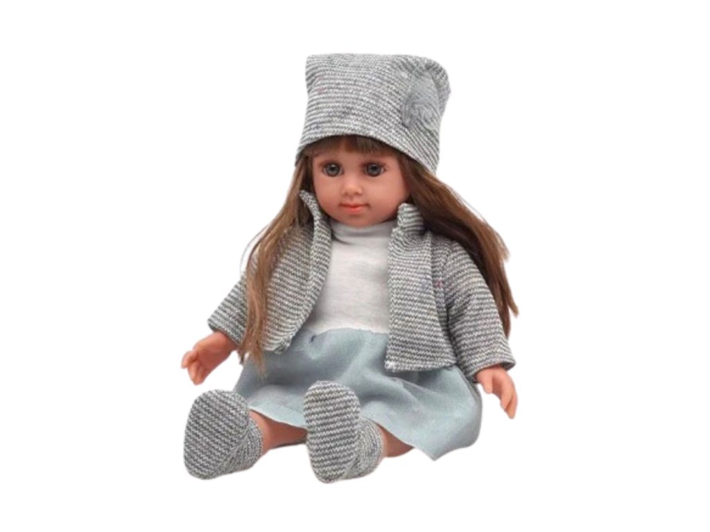 SLADKÁ ANJELSKÁ BÁBIKA V ŠEDOM OBLEČENÍ, 36,5 CM