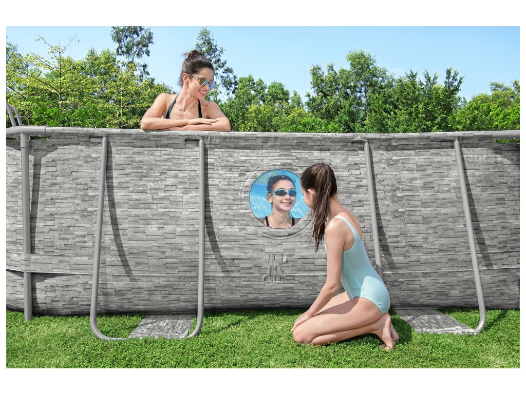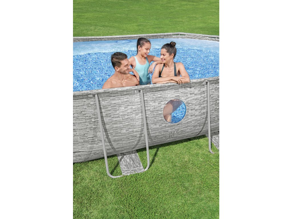 Rámový bazén Power Steel Swim Vista od Bestway je robustný a moderný dizajn, ktorý poskytne nezabudnuteľné chvíle relaxu a zábavy pre celú rodinu. Vďaka inovatívnym technologickým riešeniam a atraktívnemu dizajnu je ideálnou voľbou pre horúce letné dni. Bazén má v stenách zabudované okná, ktoré umožňujú pozorovať podmorský svet a rodičom lepšie kontrolovať hry svojich detí, čím sa zvyšuje bezpečnosť. Je ľahko montovateľný, veľmi odolný a odolný proti korózii a kovový rám je vybavený systémom, ktorý zaisťuje pevné a bezpečné spojenie medzi prvkami rámu. Je vyrobený z odolného materiálu, ktorý je vystužený pre zvýšenú pevnosť a odolnosť proti prepichnutiu. Bazén je tiež vybavený filtračným čerpadlom, bezpečnostným rebríkom a dávkovačom chemikálií ChemConnect™. Dávkovač ChemConnect udržuje vodu v bazéne čistú a zdravú tým, že udržiava stabilnú hladinu chlóru, ktorý je rovnomerne distribuovaný po celom bazéne. Rebrík poskytuje pohodlný prístup do bazéna a dá sa tiež zdvihnúť, takže sa nemusíte obávať o bezpečnosť najmladších členov vašej domácnosti, ktorí sa bez dozoru dospelých nebudú môcť dostať do bazéna.