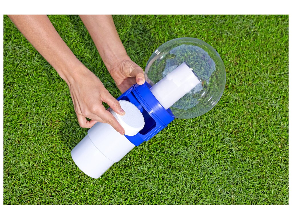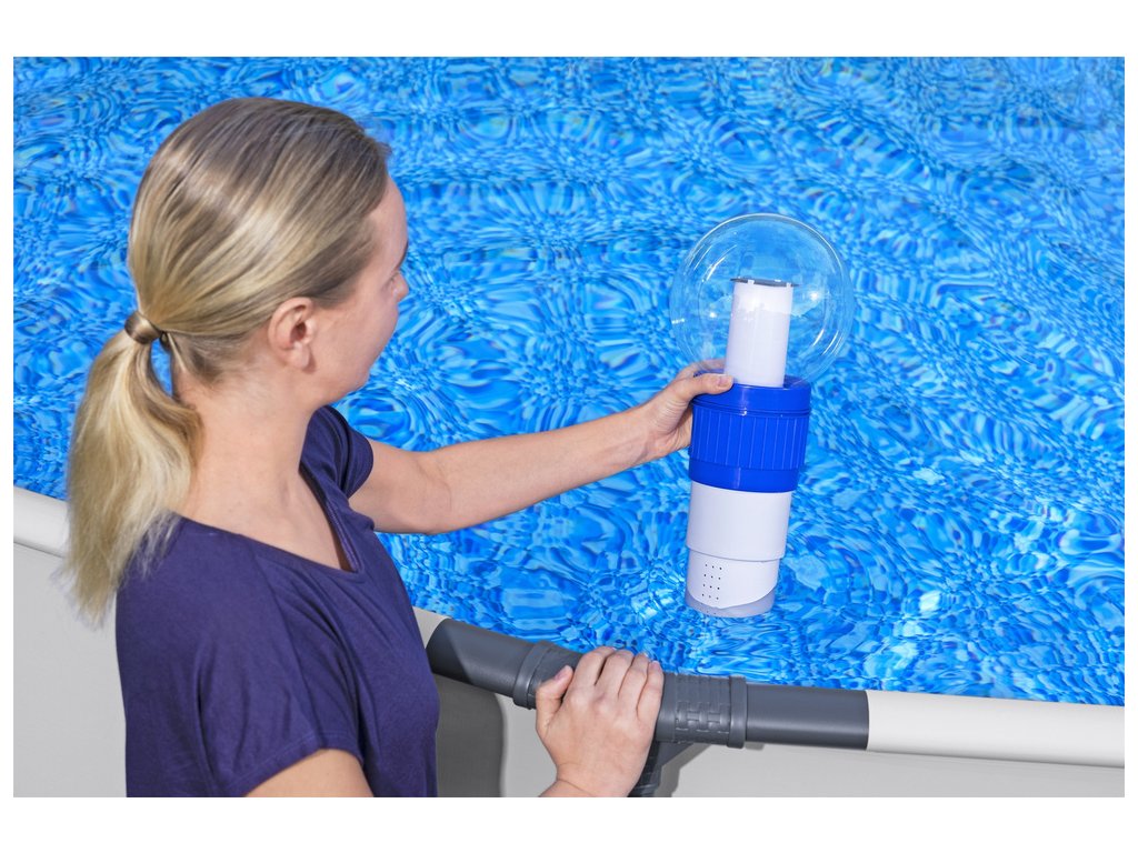 Plávajúci dávkovač chemikálií do bazénu je nevyhnutnou súčasťou vybavenia vášho záhradného bazénu. Jeho úlohou je čistiť vodu v nádrži, aby ste si mohli užívať čistotu svojho bazénu.Po vložení tablety brómu alebo chlóru, určenej na čistenie a dezinfekciu vody, do dávkovača, pláva v bazéne a pomaly rozpúšťa tabletu.Pri používaní plaváka na uvoľňovanie bazénových chemikálií nezabudnite, že ho za žiadnych okolností nesmiete používať, keď sa kúpite vo vašom záhradnom bazéne. Rozpustené chemikálie môžu vážne podráždiť vaše oči a pokožku.