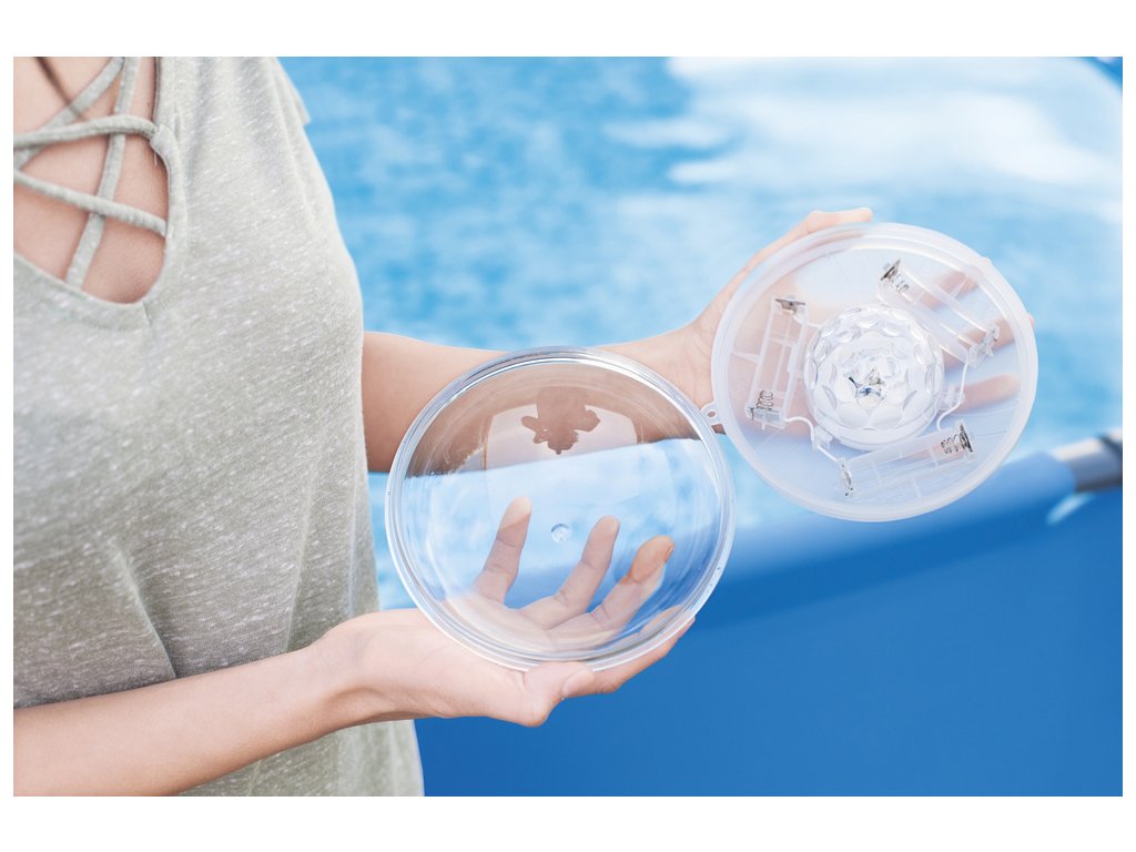 Romantický večer v záhradnom bazéne? Alebo možno bláznivá zábava v žiare meniacich sa svetiel? Teraz, vďaka plávajúcej LED lampe, bude každý moment relaxu v záhradnom bazéne jedinečný. Toto moderné zariadenie ponúka štyri farby svetla (červená, modrá, žltá a zelená) a sedem režimov blikania. LED lampa sa ľahko používa, stačí vložiť tri AA batérie (nie sú súčasťou balenia), umiestniť ju na vodnú hladinu a stlačiť tlačidlo na hornej strane lampy. Nie sú potrebné žiadne káble ani pripojenie k zdroju napájania. Tento inovatívny produkt jemne osvetľuje vodnú hladinu v oblasti s šírkou 2,43 m a hĺbkou 1,52 m. Po jednej hodine nečinnosti sa automaticky vypne.