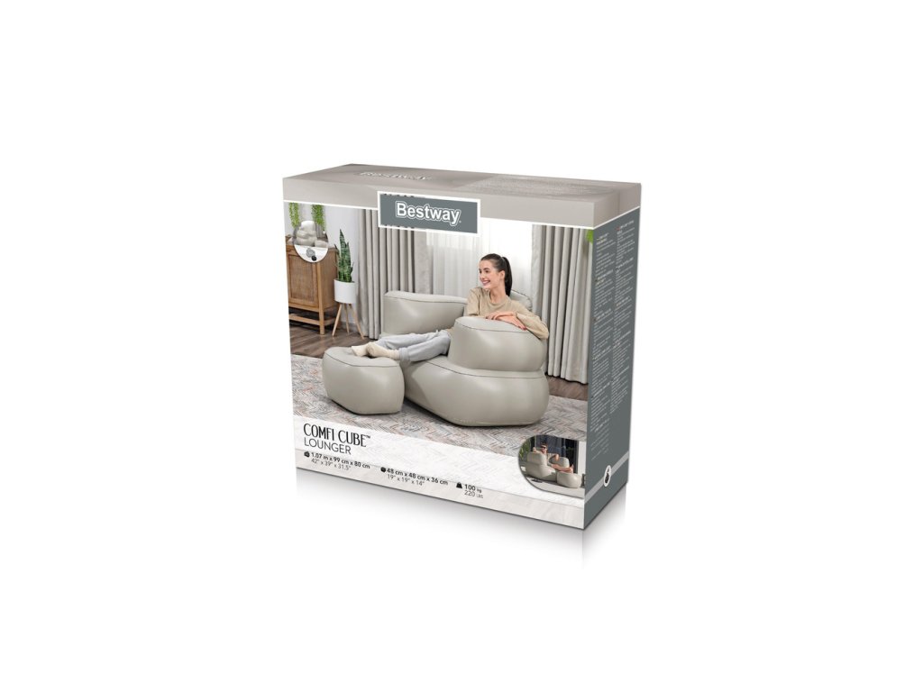 Nafukovacie kreslo Bestway je pohodlné a štýlové sedadlo, ideálne na použitie doma aj vonku. Vďaka ergonomickej konštrukcii a flokovanému povrchu zaisťuje pohodlný odpočinok, zatiaľ čo pevné materiály zaručujú odolnosť a komfort. Je vyrobené z odolného PVC, ktoré zaručuje dlhodobé používanie a pohodlie pri sedení. Vďaka skladateľnému dizajnu sa ľahko skladuje a prenáša, čo ho robí ideálnym do spálne, obývacej izby alebo domáceho baru. Moderný dizajn kresla umožňuje rýchle nafúknutie s minimálnym úsilím. Jeho kompaktný tvar umožňuje umiestniť ho kdekoľvek, čo je ideálne pre tých, ktorí ocenia pohodlie a flexibilitu.