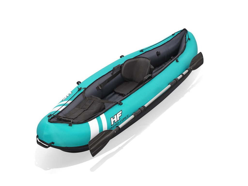 Výlet k vode je ideálny spôsob, ako stráviť voľný čas. Aby ste si tento bezstarostný čas ešte viac užili, zaobstarajte si ďalšie príslušenstvo do bazéna. Kajak je ideálny aj na rekreačné výlety na jazere alebo v bazéne. Je vyrobený z odolného vinylu, ktorý je odolný voči poškodeniu. Tkanina je odolná voči oleju, vode a intenzívnemu UV žiareniu. Vysoko kvalitná nylonová vrstva je odolná voči prepichnutiu a je navrhnutá tak, aby odolala drsným a často skalnatým vodám riek. Budete sa môcť pohybovať po kľukatých riekach, jazerách, pokojných otvorených vodách alebo v prílive a odlive vĺn. Navrhnutý s nastaviteľnými operadlami pre pohodlie a oporu. Okrem úložného priestoru umiestneného v trupe je k dispozícii aj odnímateľná úložná taška, ktorá vám umožní prístup k nevyhnutným veciam počas pádlovania na vode. Pádla s dvojitými listami sú hliníkové, ľahké a bezpečne držia na mieste vďaka bezpečnostným sponám. Keď je kajak úplne nafúknutý ručnou pumpou, má dĺžku 2,80 metra a unesie až 130 kg. Na každej strane má pevné plátené rukoväte, vďaka ktorým sa ľahko prenáša. Kajak má odnímateľné plutvy, ktoré pomáhajú udržiavať smerovú stabilitu a zvyšujú rýchlosť. Na skladovanie jednoducho odmontujte plutvy z kajaku a získate ultrakompaktný, priestorovo úsporný výrobok.