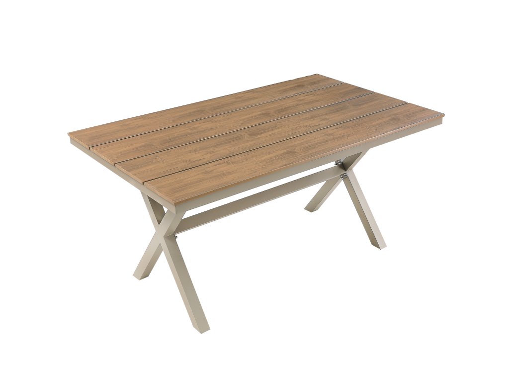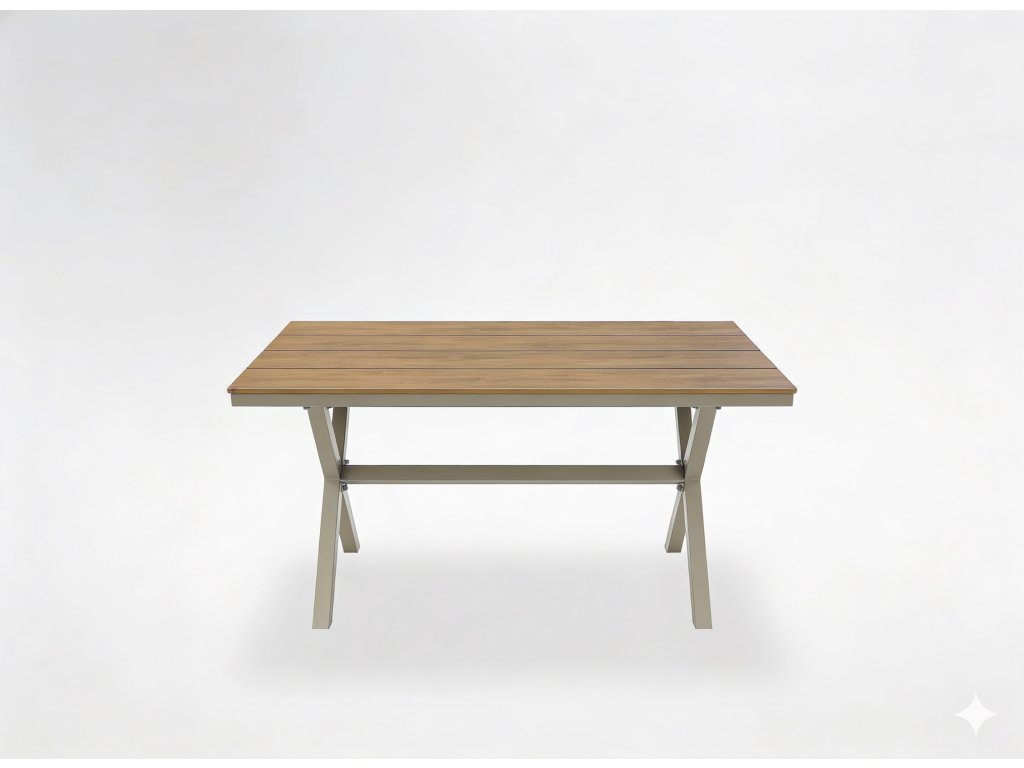 Objavte moderný záhradný stôl, ktorý spája minimalistický dizajn, vysokú odolnosť a každodenný komfort. Béžová hliníková konštrukcia v kombinácii s doskou stola s efektom dreva robí z tohto stola perfektný doplnok do vašej záhrady, na terasu alebo do átria 🌿✨