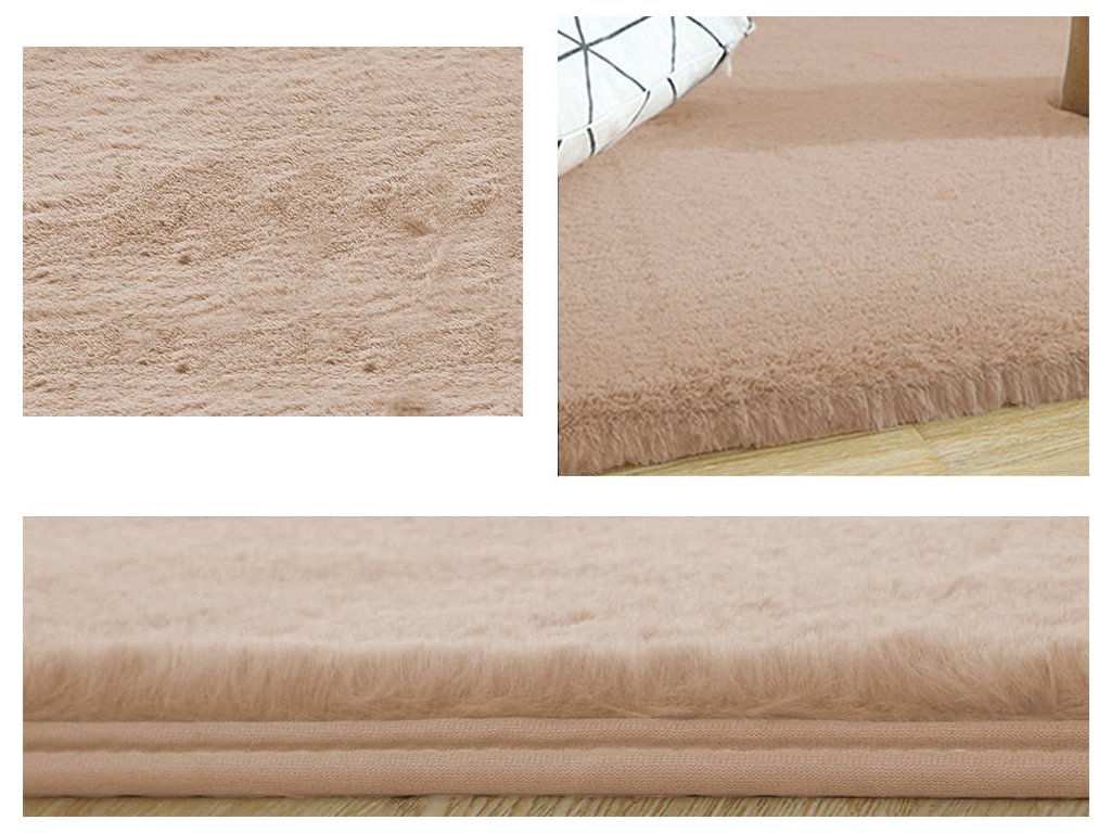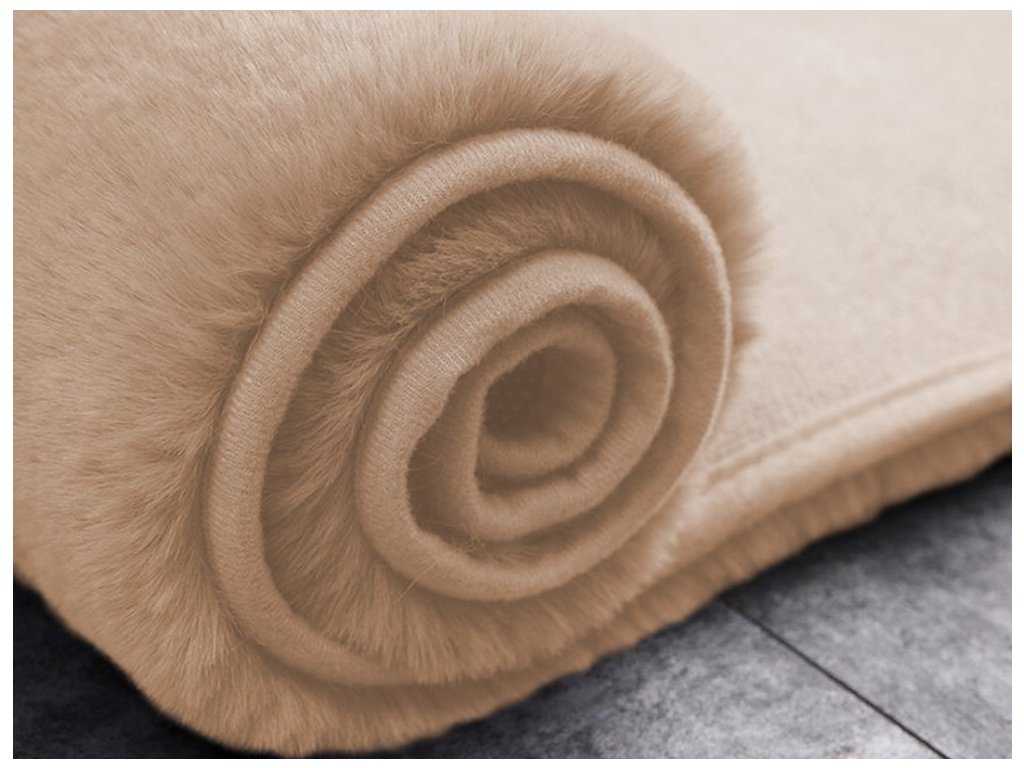 Povrch koberca tvorí hustý polyesterový vlas s efektom králičej kožušiny, ktorý je na dotyk výnimočne hebký a príjemný. Nadýchaná štruktúra vytvára pocit tepla a pohodlia pri chôdzi naboso, vďaka čomu sa koberec stáva prirodzeným centrom relaxačnej zóny.