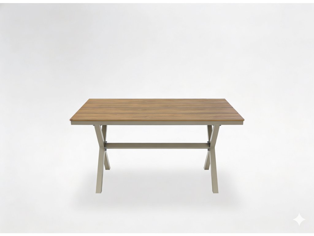 Béžový záhradný stôl Beno predstavuje ideálne spojenie minimalistického dizajnu, odolných materiálov a každodennej praktickosti. Vďaka hliníkovej konštrukcii a vrchnej doske v dekore dreva pôsobí prirodzene, no zároveň moderne, čo z neho robí univerzálny doplnok do záhrady, na terasu, balkón aj verandu. Neutrálna béžová farba sa jednoducho kombinuje s rôznymi typmi záhradného nábytku a vytvára harmonický vonkajší priestor.