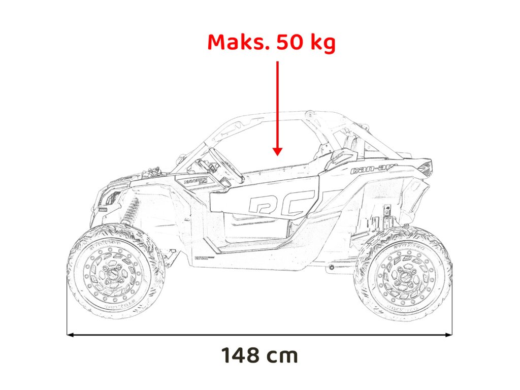 | Rozmery vozidla: | Dĺžka 148 cm,Šírka 83 cm,Výška 81 cm |