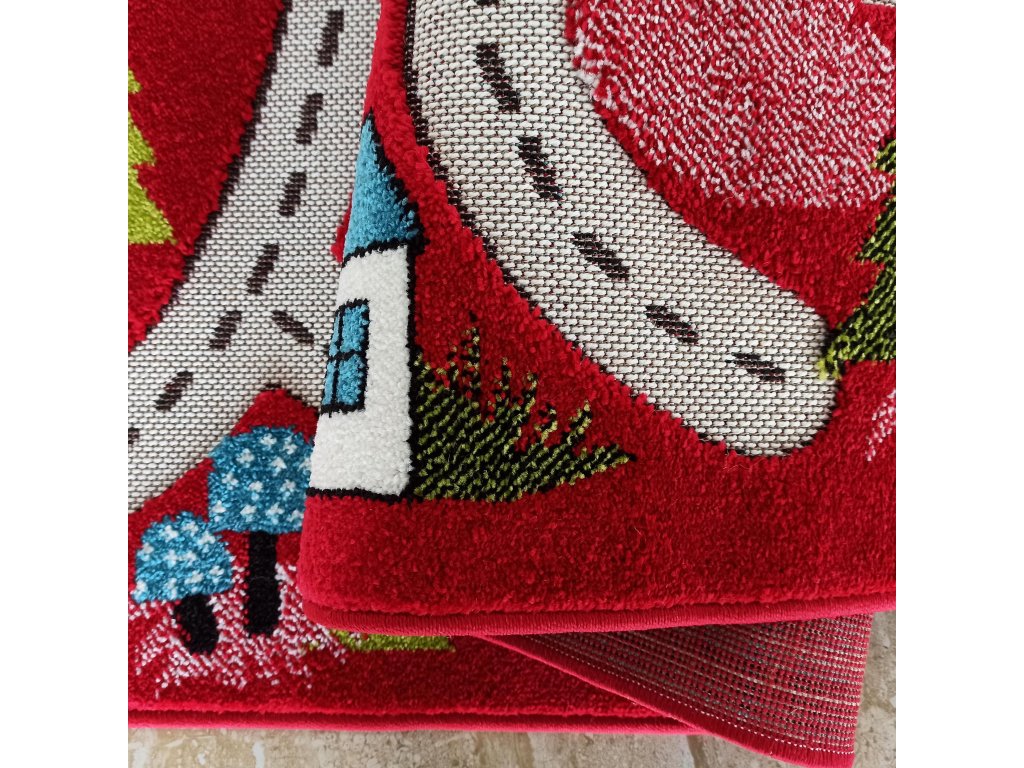 Koberec je vyrobený zo 100 % polypropylénu, čo zaručuje vysokú odolnosť proti oderu, deformáciám a vyblednutiu farieb. Výška vlasu približne 8 mm poskytuje pohodlie pri hre, izoluje od chladu a je vhodná aj na podlahové vykurovanie. Červené farebné prevedenie pôsobí energicky, hravo a dodáva detskej izbe výrazný farebný akcent.