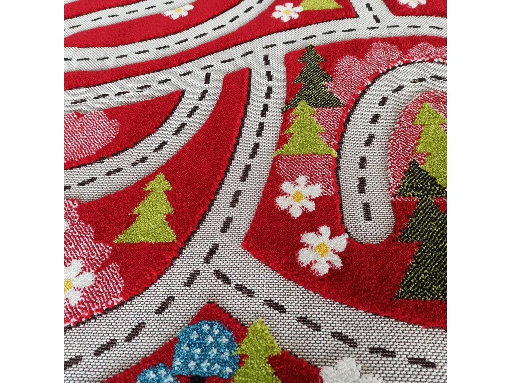 Červený detský koberec s motívom mesta Color Kids 02 je ideálnou voľbou pre rodičov, ktorí hľadajú praktický, bezpečný a hravý koberec pre deti. Motív mesta s cestami a uličkami podporuje kreatívnu hru, rozvoj motoriky a priestorové vnímanie. Vďaka jemnému 3D efektu a rôznej štruktúre materiálu pôsobí koberec atraktívne a prirodzene stimuluje detské zmysly.