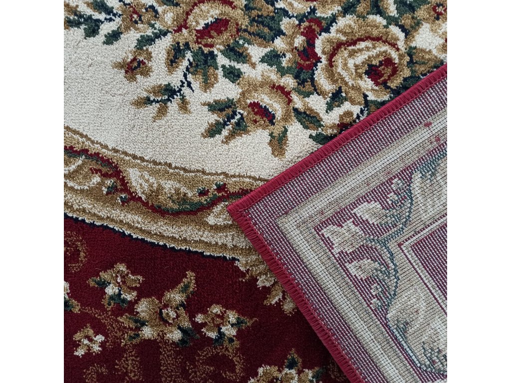 Červený koberec s orientálnym vzorom Exclusiv 04 N je výrazným dekoračným prvkom, ktorý dodáva interiéru luxus, eleganciu a nadčasový charakter. Sýta červená farba v kombinácii s detailným ornamentálnym motívom vytvára bohatý vizuálny efekt a okamžite pritiahne pozornosť. Koberec sa výborne hodí do klasických, glamour aj art-deco interiérov, kde dokáže podčiarknuť noblesu nábytku aj doplnkov. Ozdobný stredový medailón a precízne lemovanie pôsobia harmonicky a vyvážene.