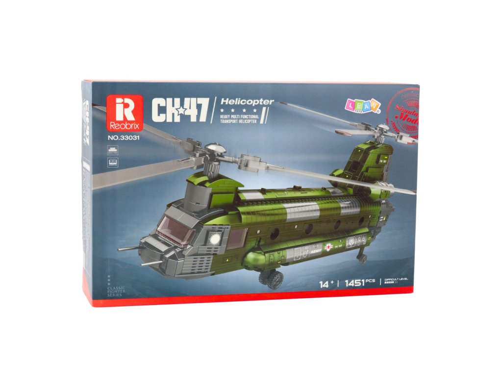 CH-47 Chinook je jeden z najvýraznejších a najznámejších transportných vrtuľníkov na svete. Teraz si môžete postaviť vernú a impozantnú repliku vďaka stavebnicu pozostávajúcej z 1 451 dielov. Tento jedinečný model je určený pre nadšencov techniky, vojenskej techniky a pokročilého staviteľstva a ponúka kombináciu kreatívnej zábavy a fascinujúceho modelárskeho zážitku.