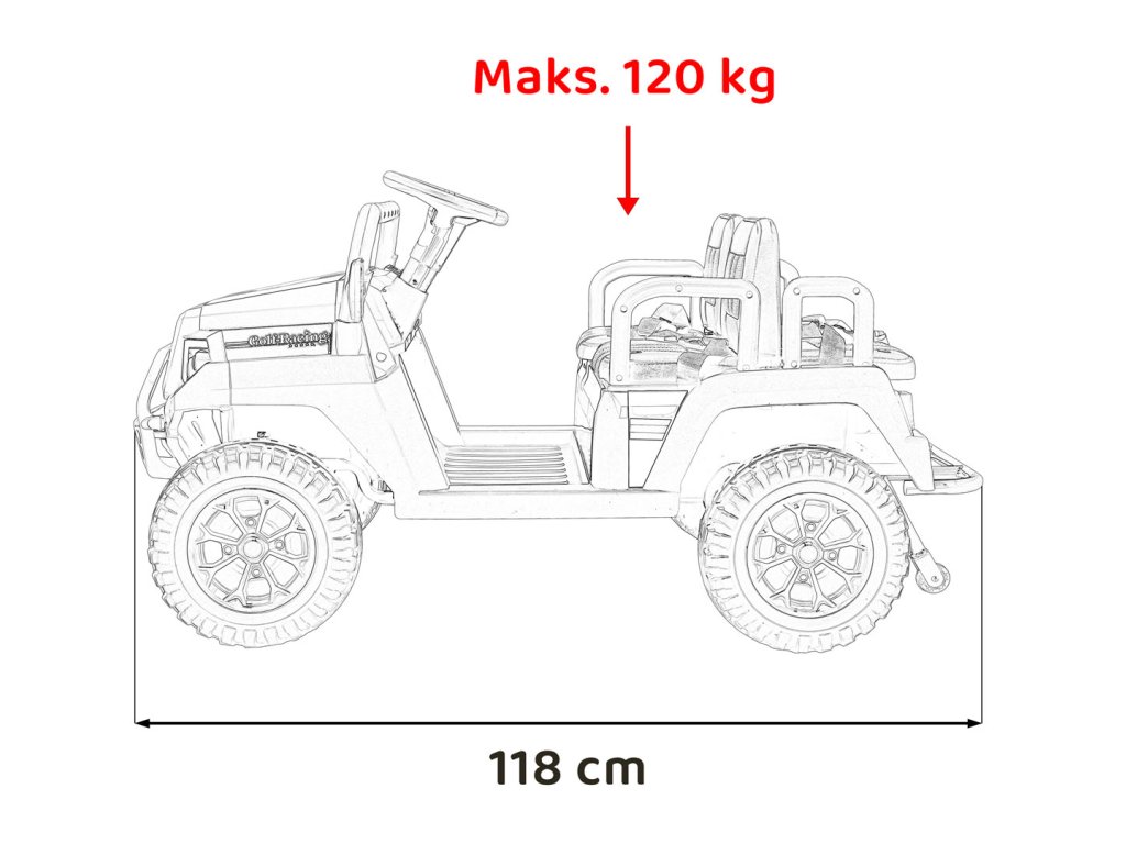 | Rozmery vozidla: | Dĺžka 118 cm,Šírka 75 cm,Výška 72 cm |