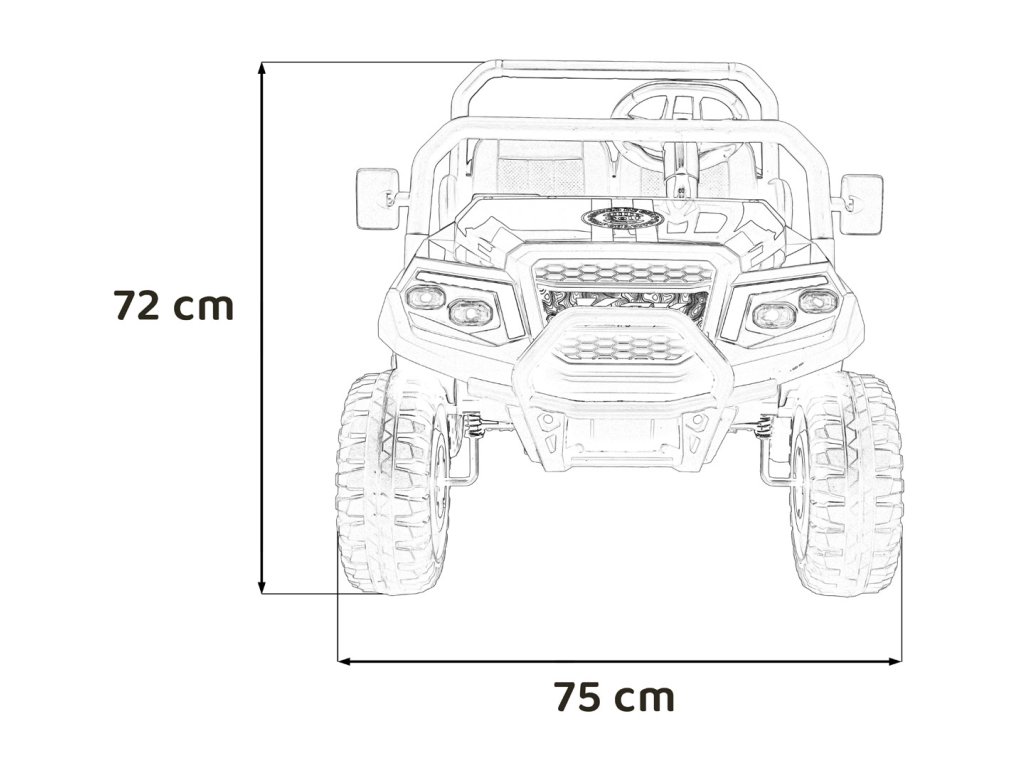 | Rozmery vozidla: | Dĺžka 134 cm,Šírka 75 cm,Výška 72 cm |