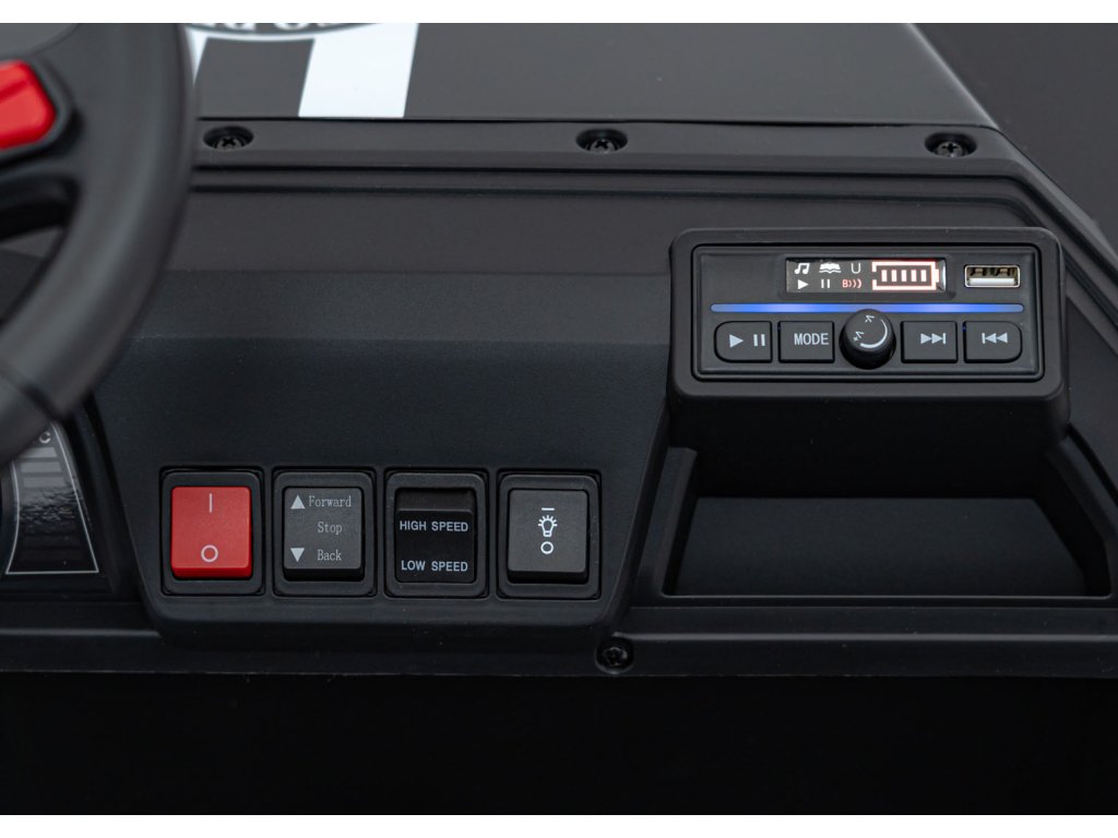 - Diaľkové: 2,4 GHz, 3 rýchlosti, Bezpečnostné tlačidlo zastavenia,