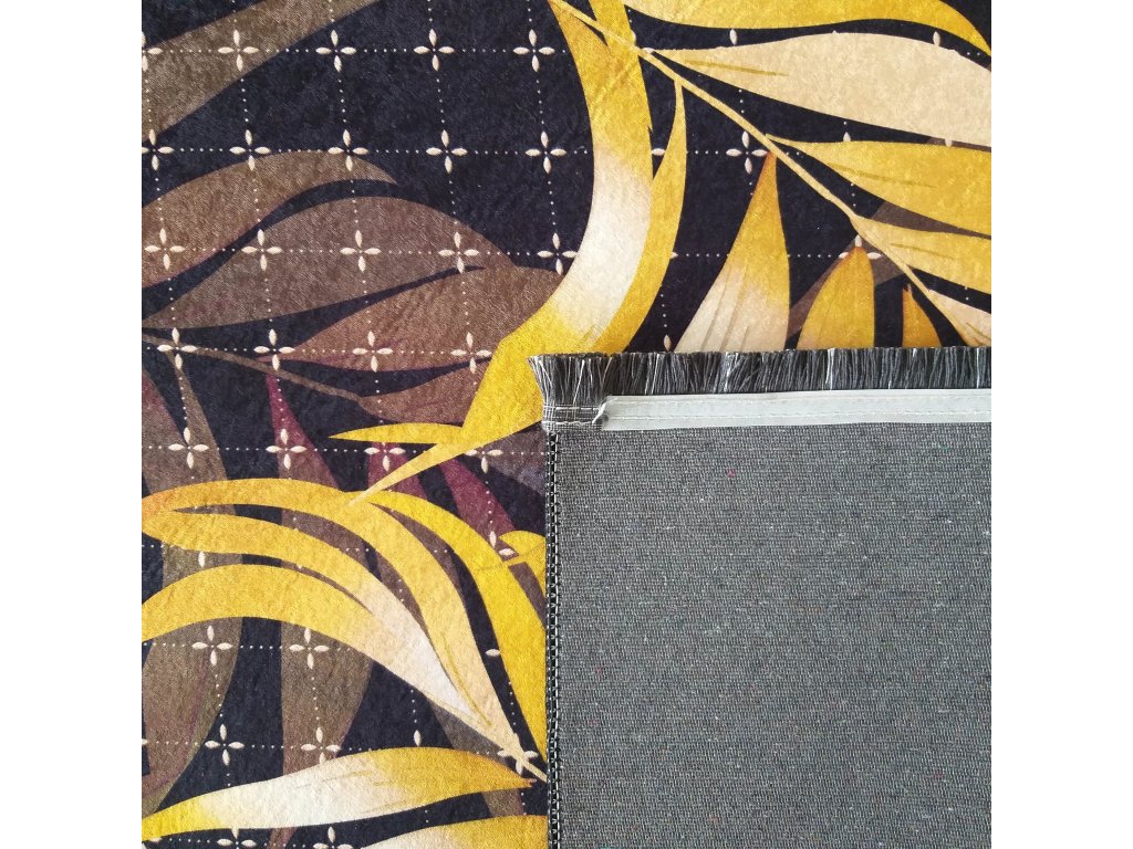 Čierno-zlatý koberec s motívom listov Black 08 je moderným dizajnovým doplnkom, ktorý dodá interiéru elegantný a svieži vzhľad. Zlaté listy na tmavom podklade vytvárajú výrazný kontrast a pôsobia luxusne aj prirodzene zároveň. Koberec sa hodí do obývačky, spálne, predsiene, ale aj do ďalších obytných priestorov, kde chcete zvýrazniť štýl a atmosféru miestnosti.