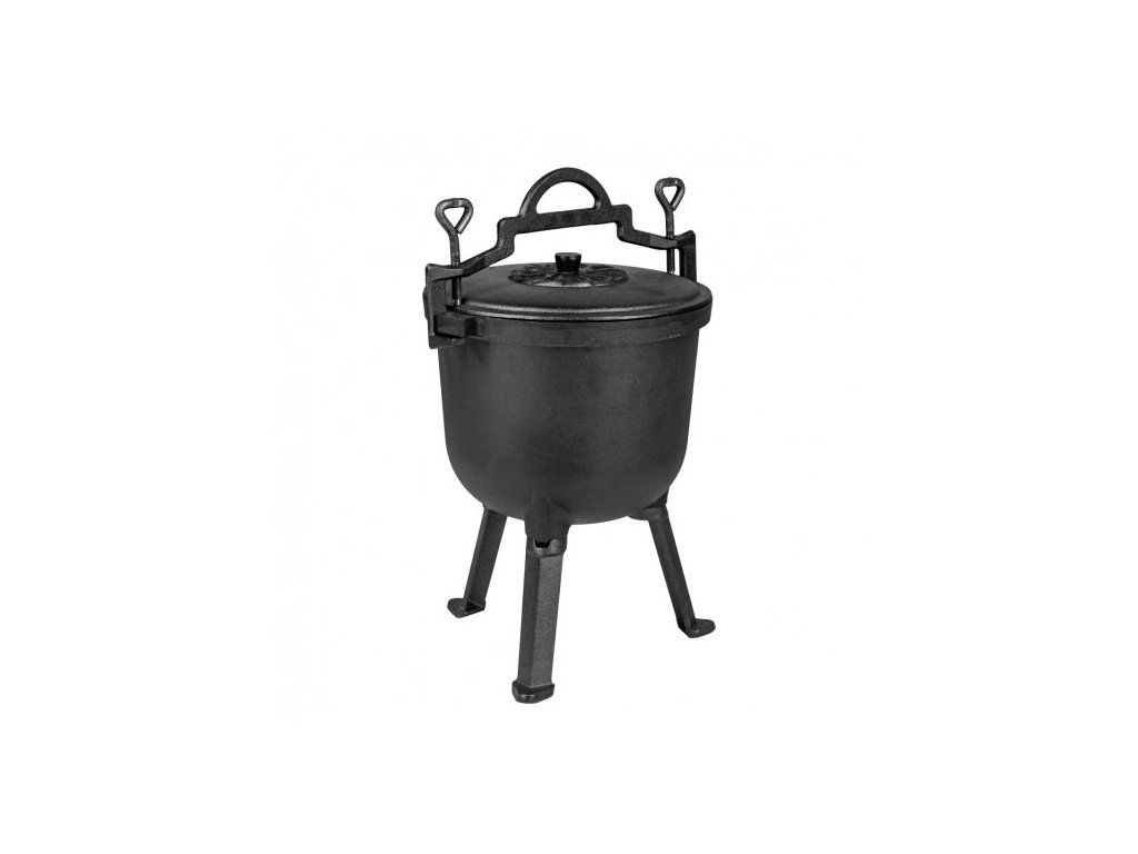 Liatinový kotlík je praktickým riešením na prípravu vynikajúcich jedál na ohni. Pevná konštrukcia z liatiny zaručuje odolnosť a dlhšiu životnosť. Veko uľahčuje udržanie požadovanej teploty vo vnútri a zabraňuje prípadnému rozstrekovaniu tuku. Objem 5 l umožňuje prípravu jedla pre niekoľko osôb.