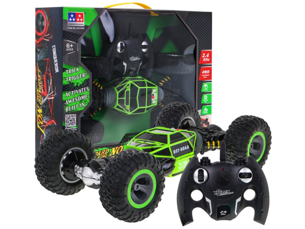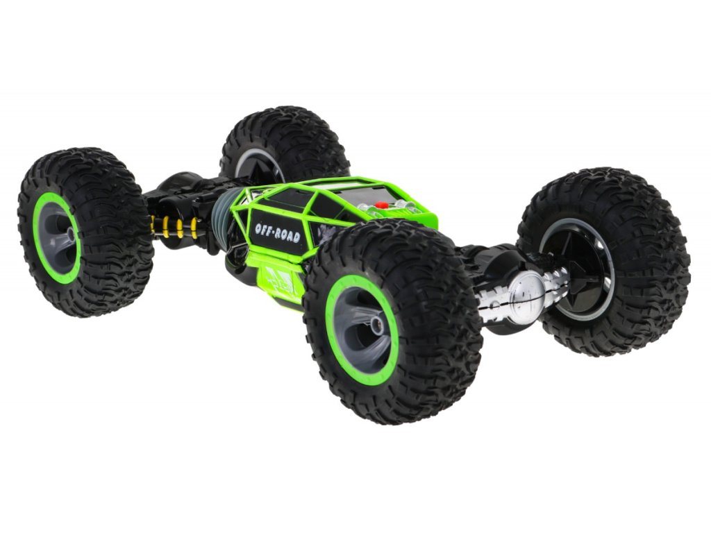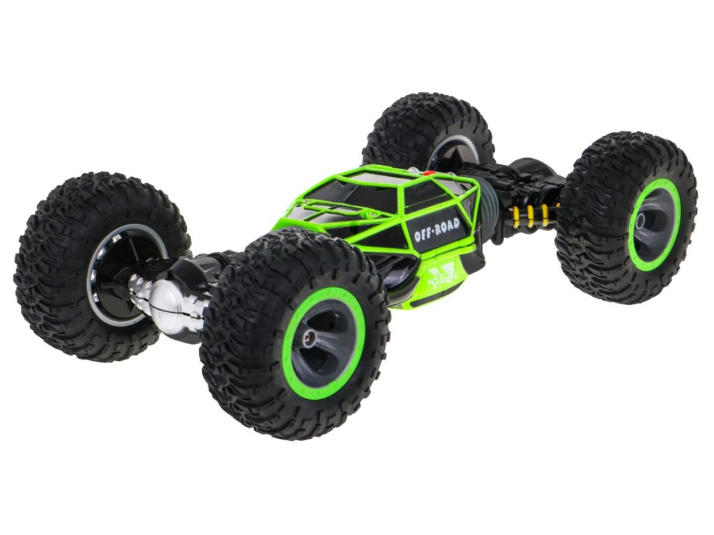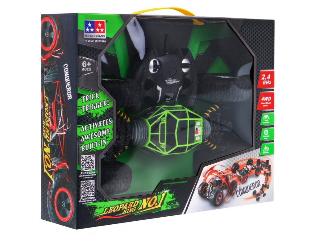 | Diaľkovo ovládané vozidlo je určené pre deti od 6 rokov. Vozidlo má pohon na štyri kolesá, vďaka čomu ľahko prekonáva prekážky, ako sú kamene, výmole a vysoká tráva. Auto môže jazdiť vo vzpriamenej alebo zloženej polohe (zdvihnuté). Gumené kolesá zabezpečujú, že auto má dobrú priľnavosť k povrchu. Všetky manévre je možné vykonávať pomocou diaľkového ovládania alebo gestového ovládača. Hračka je napájaná 4,8 V batériou (súčasťou balenia) pre vozidlo a 2 x AA 1,5 V batériami (nie sú súčasťou balenia) pre diaľkové ovládanie. | |