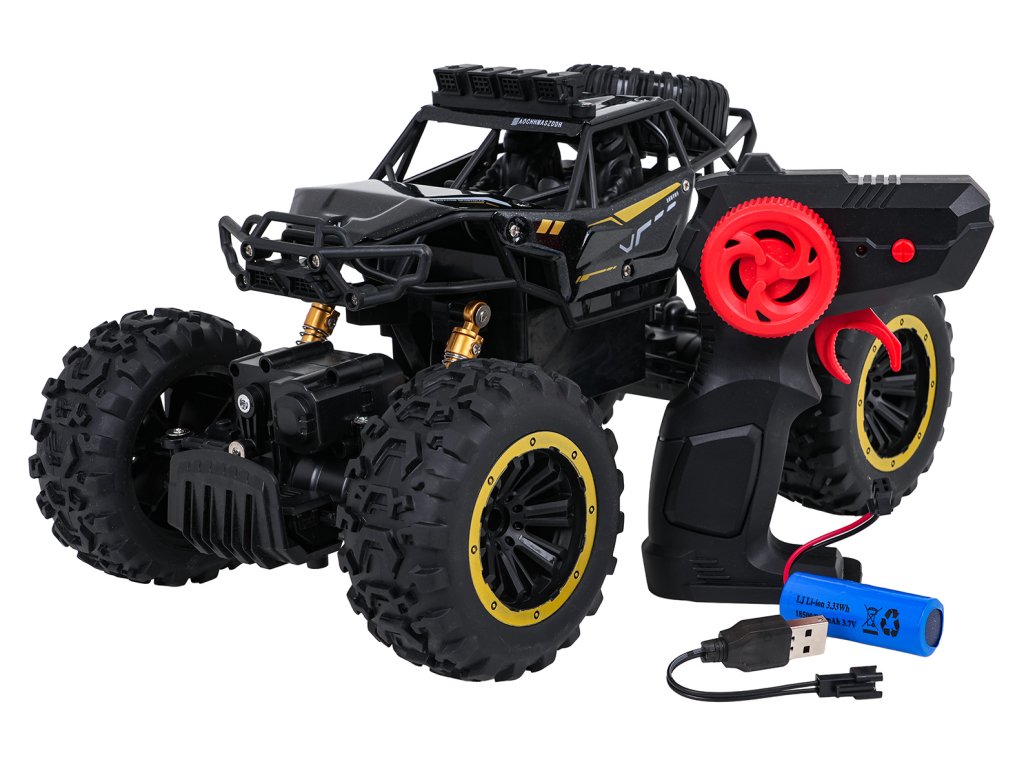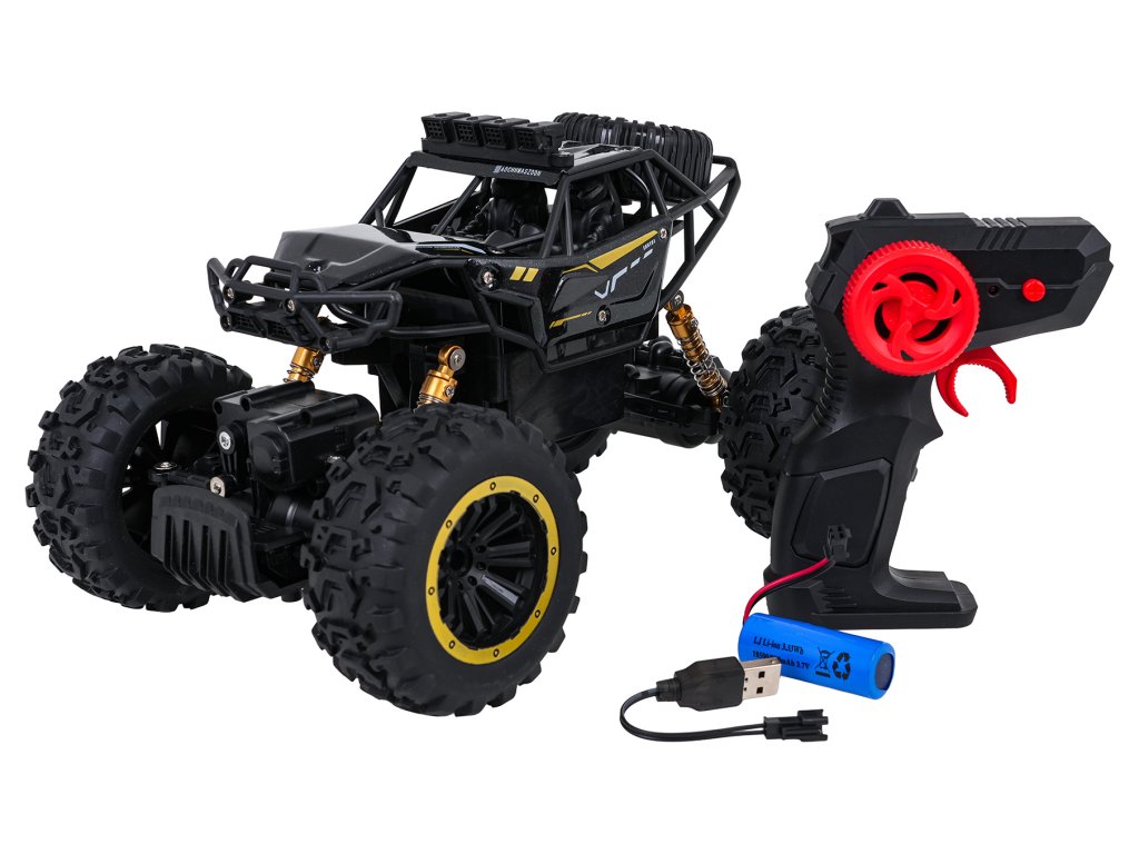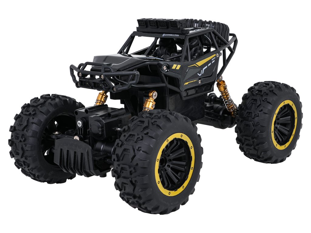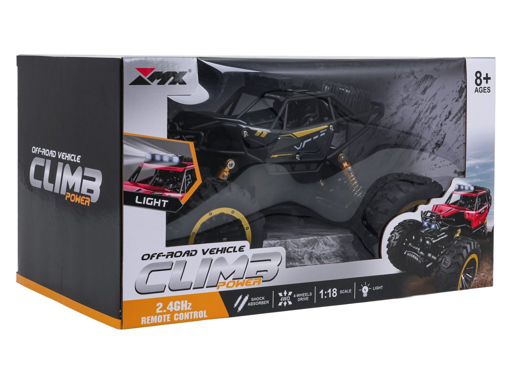 Kovový crawler CLIMB POWER v mierke 1:18, diaľkovo ovládaný s pohonom všetkých štyroch kolies, je vhodný pre deti od ôsmich rokov. Veľké gumové protiskluzové pneumatiky a pružinové odpruženie umožňujú vozidlu ľahko prekonať akýkoľvek povrch. Pásový vozík je vyrobený z vysoko kvalitných materiálov a má kovovú, lakovanú karosériu, ktorá zaručuje jeho odolnosť. Motor použitý vo vozidle mu umožňuje dosahovať vysoké rýchlosti. Hračka je napájaná 3,7 V batériou (súčasť balenia) a diaľkové ovládanie vyžaduje 2 x AA 1,5 V batérie (nie sú súčasťou balenia).