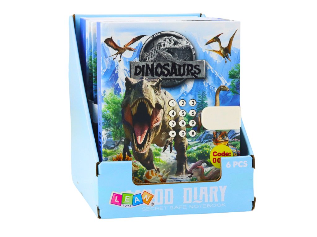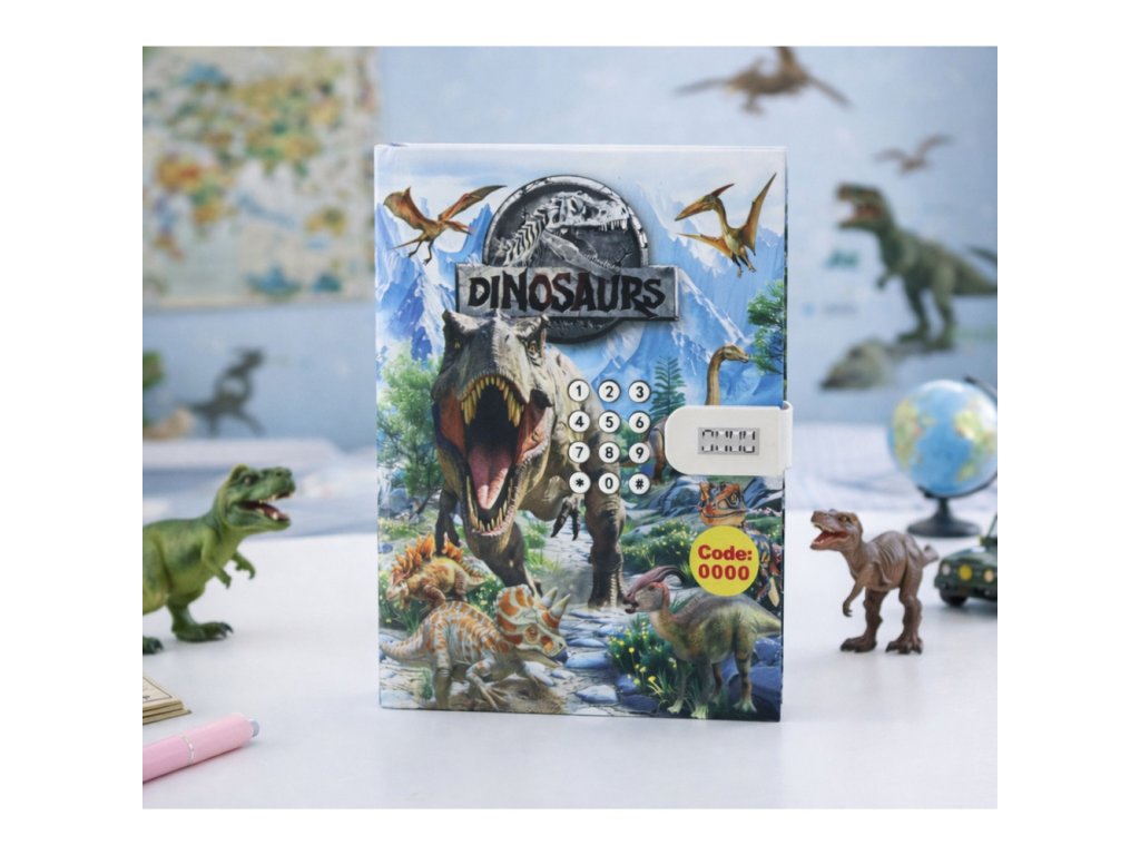 Keď sa denník otvorí pomocou kódu na obale, zahrá sa veselá melódia, vďaka čomu je používanie denníka ešte zábavnejšie. Kód je možné neskôr zmeniť, čo vám umožňuje prispôsobiť bezpečnosť vašim vlastným potrebám. Vnútro denníka je vyplnené farebnými stránkami zdobenými krásnymi motívmi dinosaurov, ktoré povzbudzujú k písaniu, kresleniu a rozvoju fantázie.