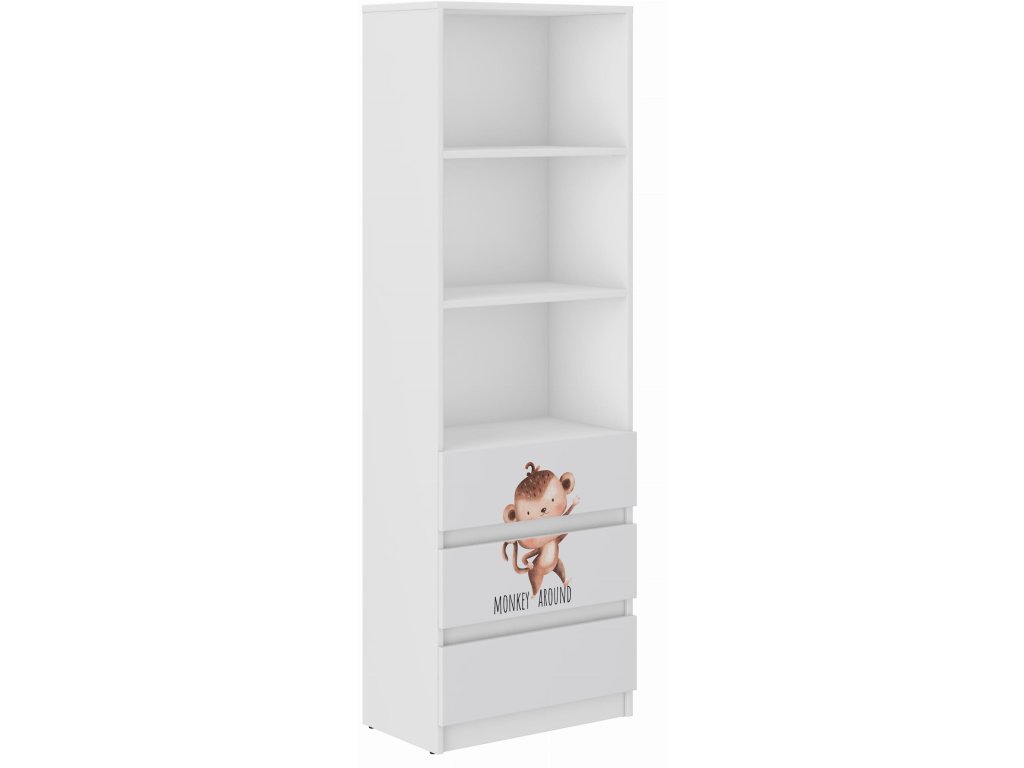Detská knižnica B-3 SAFARI OPICA MATERIÁL:- Telo a čelné strany – laminovaná doska, vďaka ktorej má nábytok pevnú a spoľahlivú konštrukciu.