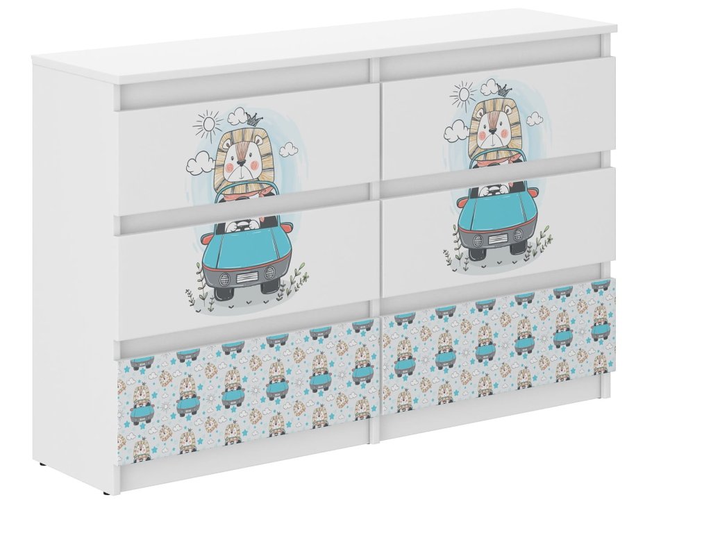 Detská komoda R-120 LEVÍ KRÁĽ MATERIÁL:- Korpus a čelné strany – laminovaná doska, vďaka ktorej má nábytok pevnú a spoľahlivú konštrukciu.