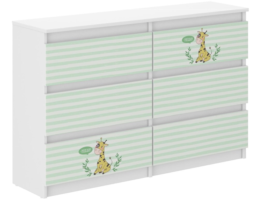 Detská komoda R-120 ŽIRAFA MATERIÁL:- Korpus a čelné strany – laminovaná doska, vďaka ktorej má nábytok pevnú a spoľahlivú konštrukciu.