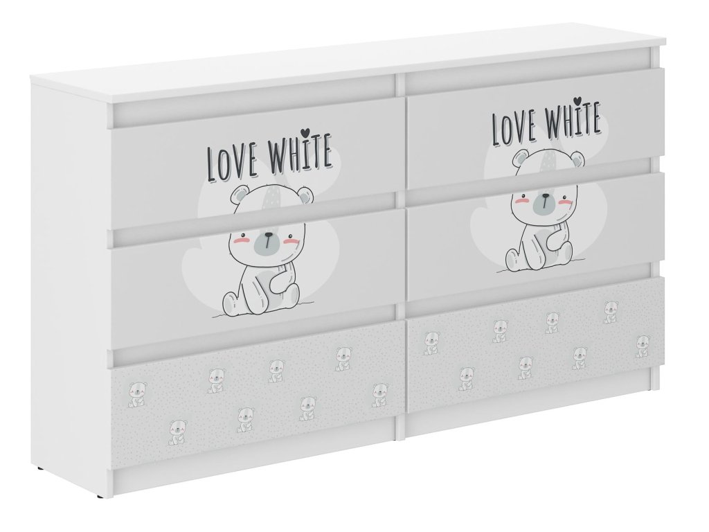 Detská komoda R-140 BIELY MEDVEDÍK MATERIÁL:- Korpus a čelné strany – laminovaná doska, vďaka ktorej má nábytok pevnú a solídnu konštrukciu.