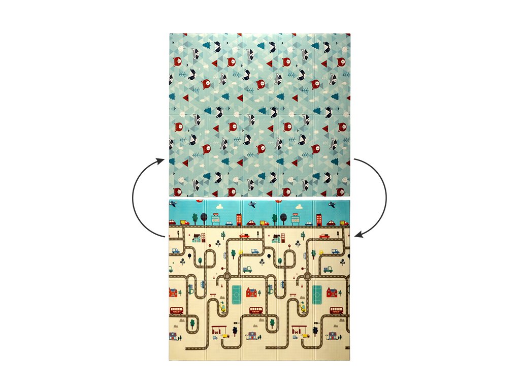 Skladacia konštrukcia umožňuje podložku behom chvíľky zbaliť a presunúť do inej izby alebo vziať so sebou von. Hrubá vrstva výborne izoluje od chladnej podlahy, čo robí z podložky pohodlný priestor pre bábätká aj väčšie deti. Hodí sa na všetky typy povrchov a dokonale nahrádza koberec – len je čistejšia, mäkšia a praktickejšia.