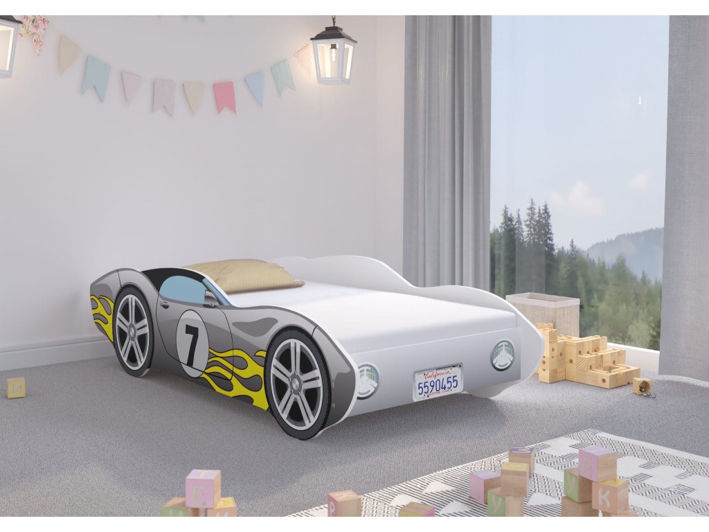 Detská posteľ Autko CORVETTA 160x80 ŠEDÁ s plameňom Súprava obsahuje:- Postel v tvare auta s krásne vyhotovenými detailmi.