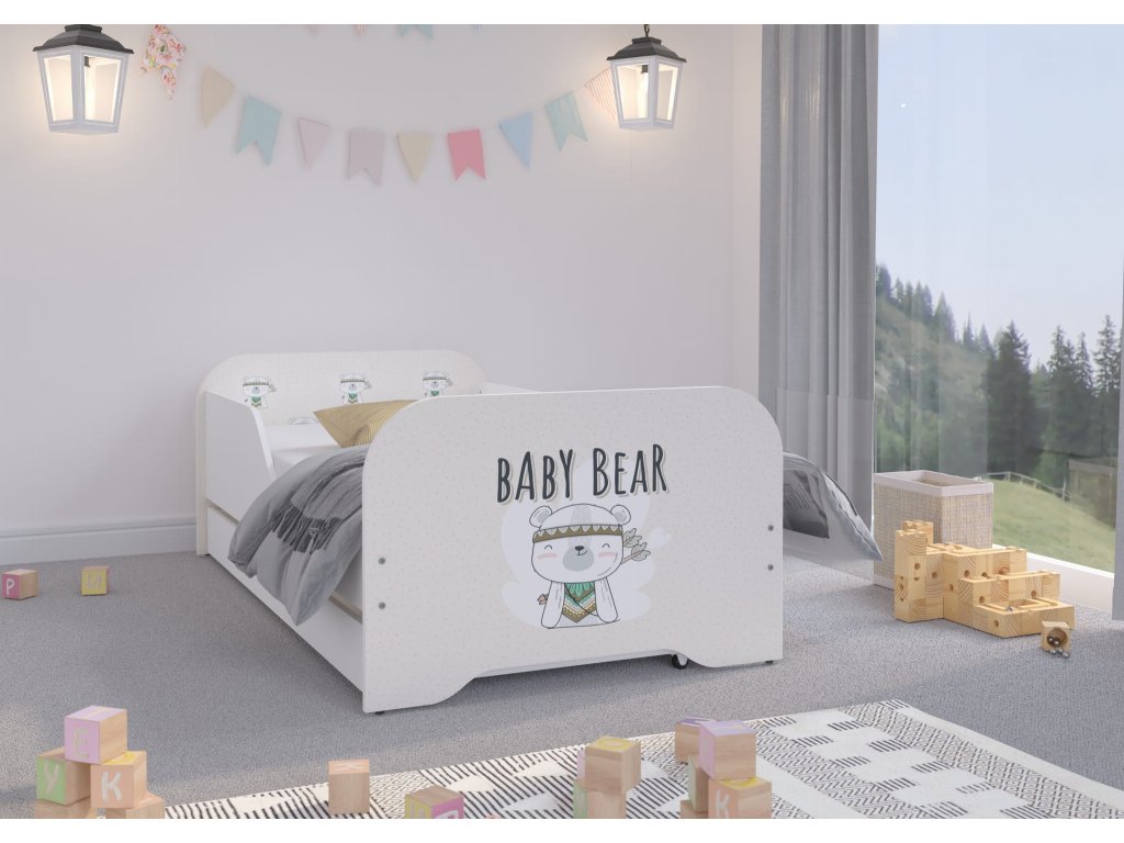 Detská posteľ MIKI 140x70 BABY BEAR Súprava obsahuje:- Posteľ s profilovaným bočným lemom, ktorý zaručuje bezpečnosť pri používaní.