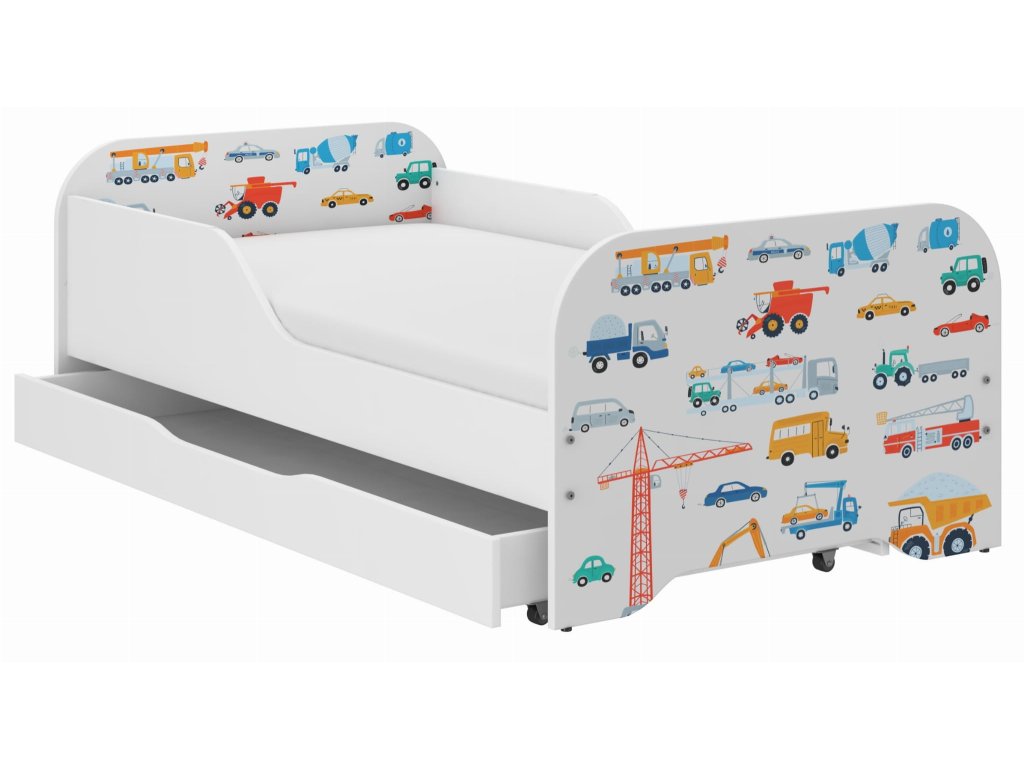 Detská posteľ MIKI 160x80 MASZYNY Súprava obsahuje:- Posteľ s profilovaným bočným lemom, ktorý zaručuje bezpečnosť pri používaní.