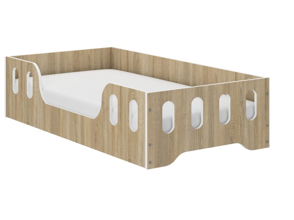 Detská posteľ Montessori LAKI 140x70 Sonoma Súprava obsahuje:- Postieľku s ochrannou bočnicou, vďaka ktorej bude vaše dieťa spať bezpečne celú noc.