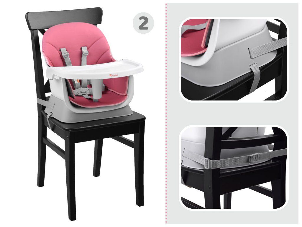 Detská stolička sa jednoducho montuje, vďaka čomu nebude problém s úpravou nábytku. Všetko funguje na kliknutie, západku, je stabilné a bezpečné. Samotná stolička má 5-bodové bezpečnostné pásy, blokádu medzi nožičkami dieťaťa, ktorá zabraňuje skĺznutiu dieťaťa. Pásy na upevnenie stoličky k stoličke sú pevné, vďaka čomu môže dieťa sedieť s rodičmi pri stole a spoločne sa najesť.