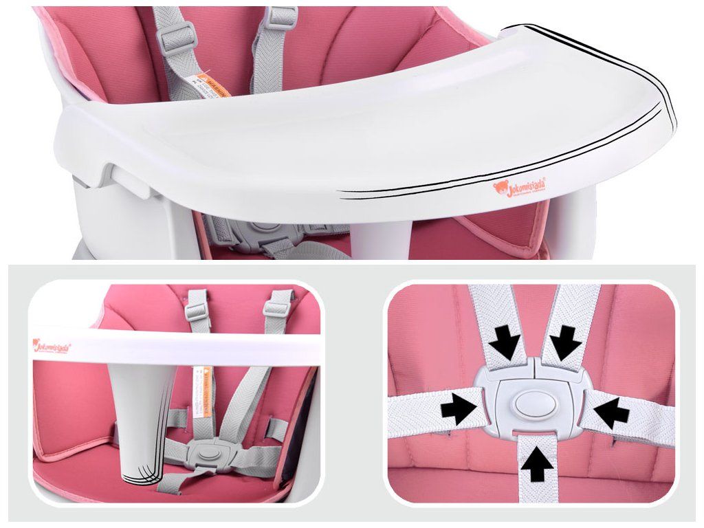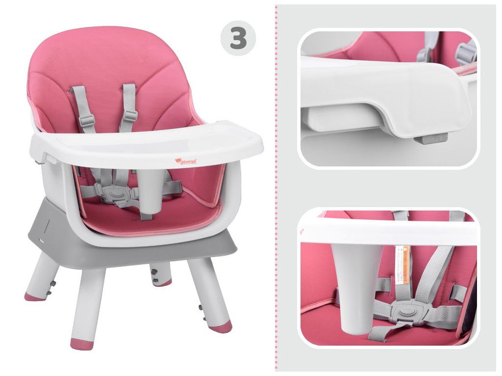:- sedadlo s podnosom, na ktorom môže dieťa samostatne jesť, pričom má jedlo na svojom podnose, a je známe, že bábätká milujú ochutnávať a vnímať jedlo všetkými zmyslami; podnos je odnímateľný a ľahko umývateľný. A tiež kŕmenie dieťaťa bez nutnosti sa skláňať.