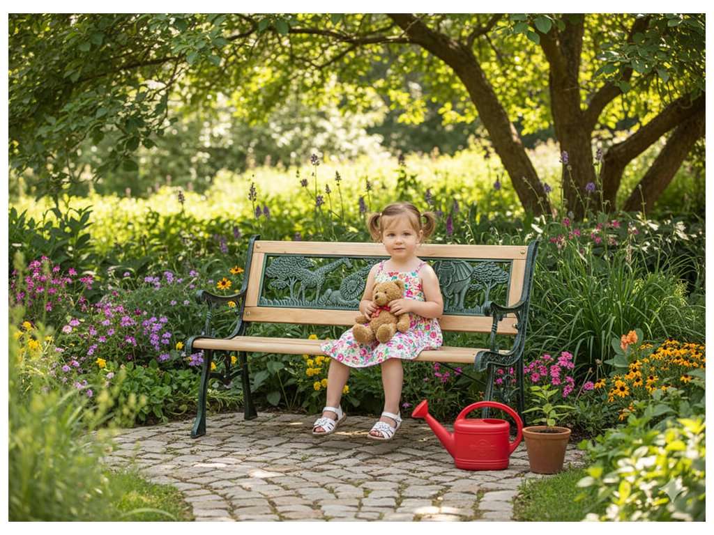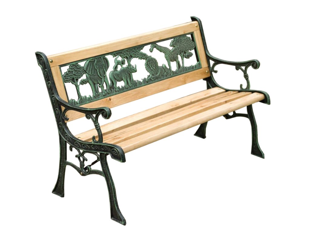 Kombinácia drevených lamiel a liatinových bočníc zabezpečuje vysokú stabilitu, pevnosť a dlhú životnosť aj pri každodennom používaní. Materiály sú vhodné do vonkajšieho prostredia a zvládajú bežné poveternostné podmienky bez náročnej údržby. Maximálne zaťaženie 50 kg je prispôsobené potrebám detí, čo zaručuje bezpečné používanie počas hry aj oddychu.