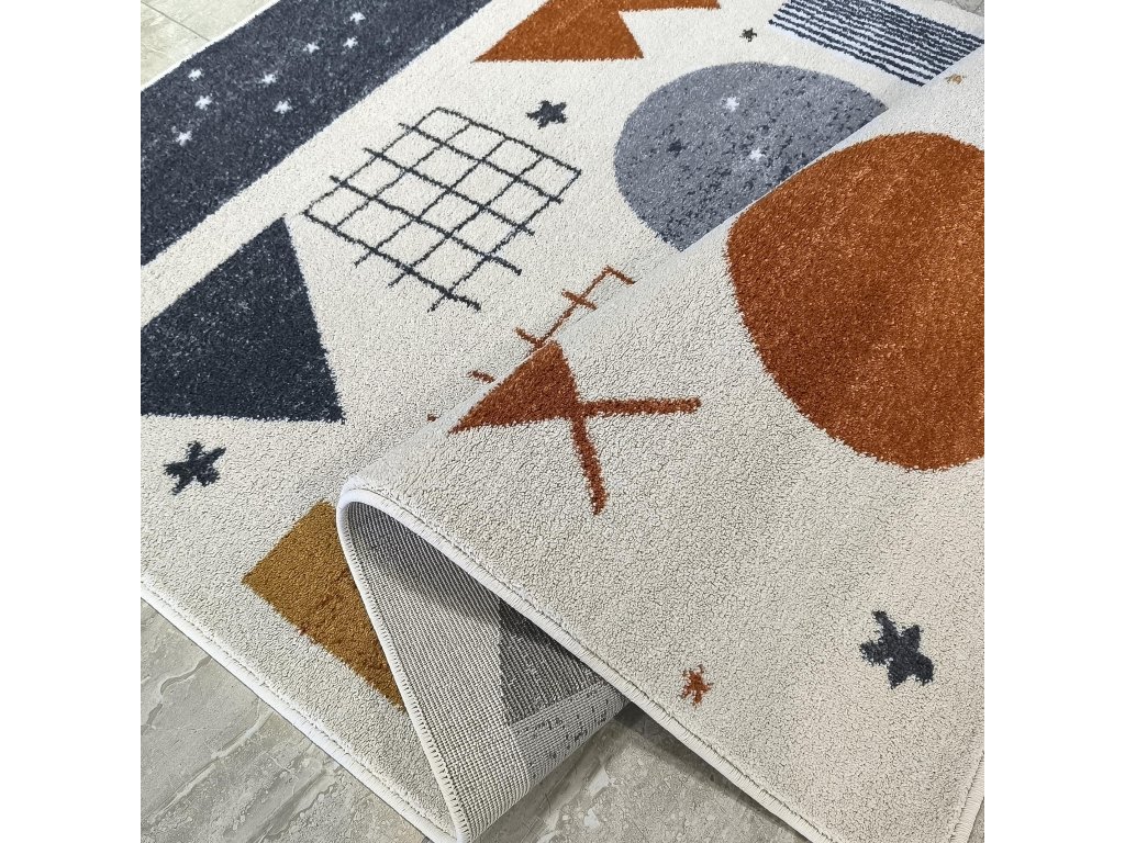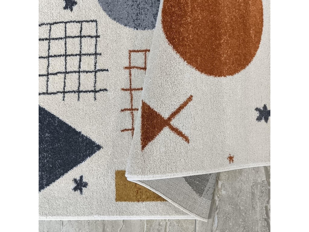 Detský farebný koberec s geometrickými vzormi Lovi 01 je ideálnym doplnkom do detskej izby, ktorý spája moderný dizajn, jemné pastelové farby a vysoký komfort pri hre. Úchvatný geometrický vzor podporuje detskú predstavivosť, zatiaľ čo harmonicky zladené farby navodzujú pocit pokoja, bezpečia a útulnosti.