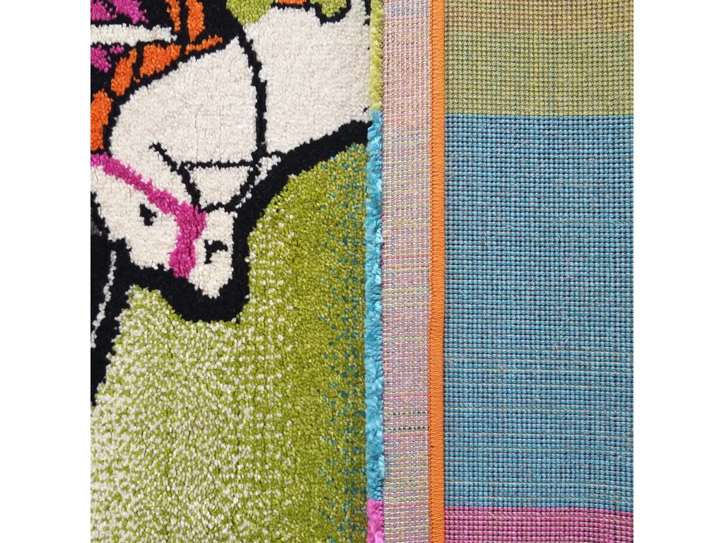 Detský farebný koberec s motívom kolotoča Bella 116 vytvára v detskej izbe veselú a bezpečnú hraciu zónu. Ilustrácia kolotoča s deťmi pôsobí hravo a rozprávkovo, vďaka čomu sa koberec hodí do dievčenskej aj chlapčenskej izby a podporuje fantáziu pri každodenných hrách.