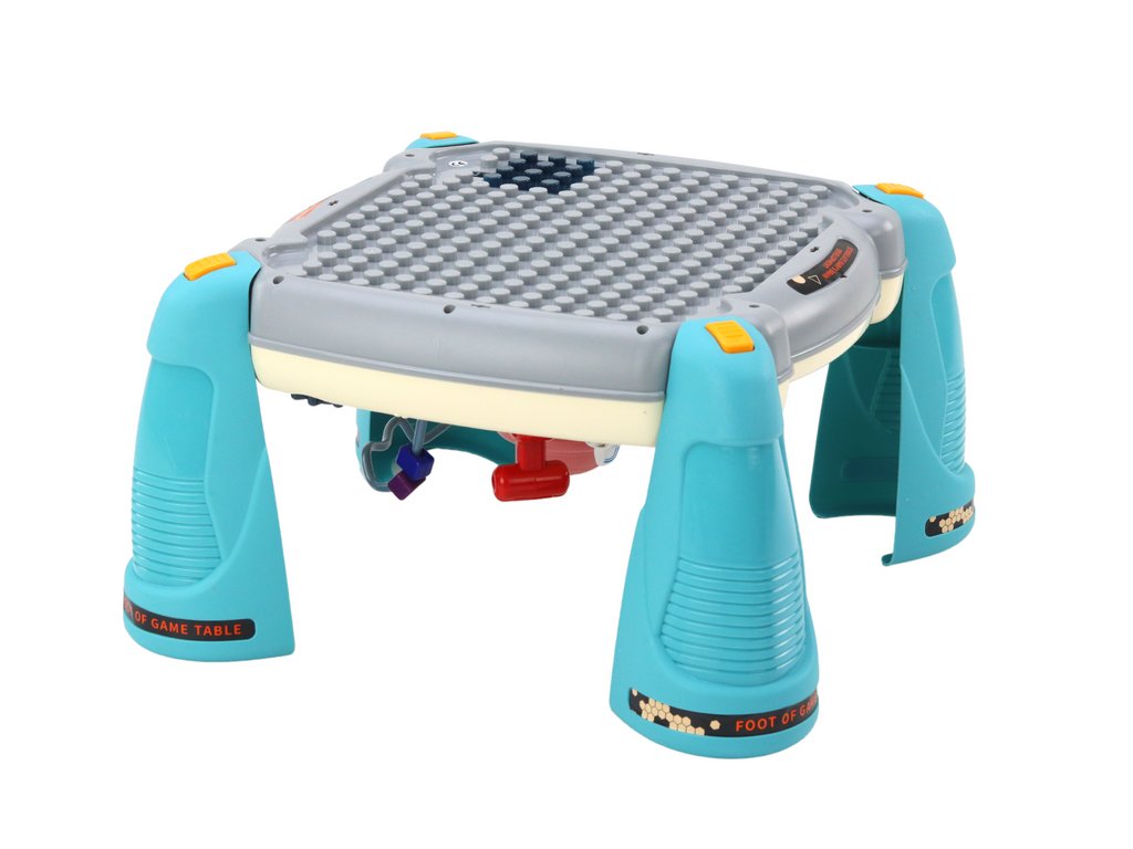Vzdelávací stôl stojí na štyroch modrých nohách, ktoré sa dajú odňať, čo umožňuje hrať sa priamo na podlahe. Okrem toho má druhá strana stola úchytky, ktoré umožňujú staviť bloky a hrať sa so zmyslami.