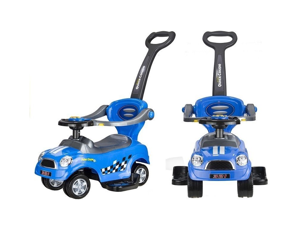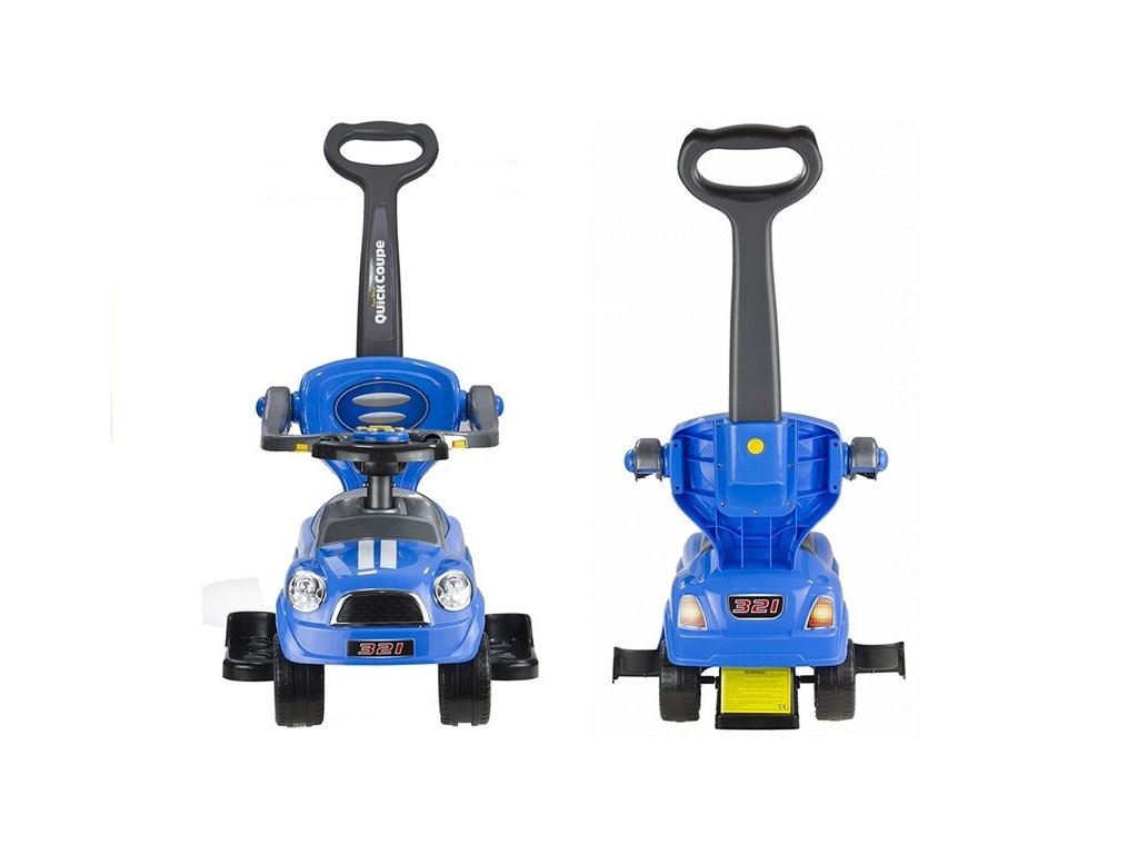 Predstavená jazdecká hračka je vyrobená z ľahkej, ale veľmi odolnej plastovej konštrukcie, ktorá umožňuje dieťaťu voľne a obratne odrážať sa od zeme nohami bez vynaloženia veľkej energie. Volant v prednej časti výrobku umožňuje dieťaťu rozhodnúť, ktorým smerom pôjde. Ak však nechcete, aby vaše dieťa ovládalo malé vozidlo, môžete ho riadiť sami pomocou vodítka, ktoré je súčasťou sady. Rukoväť pre rodiča bude veľmi dôležitá nielen v situácii opísanej vyššie, ale aj vtedy, keď dieťa stratí silu na samostatnú hru. Bariéry okolo sedadla zabraňujú dieťaťu vyklznúť a ostatné prvky mu umožňujú pohodlne položiť nohy na opierku a tlačiť auto.
