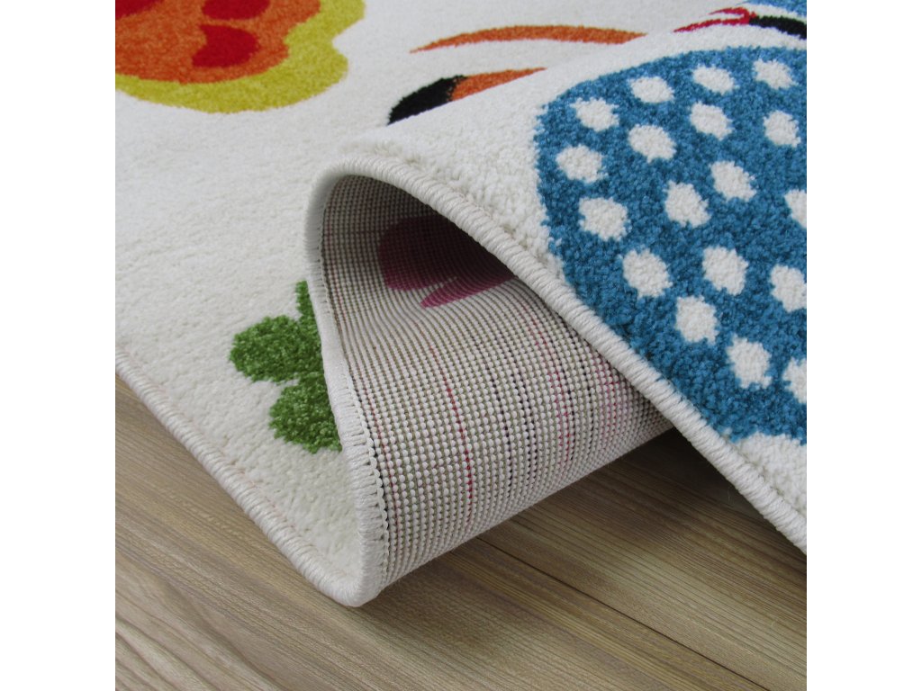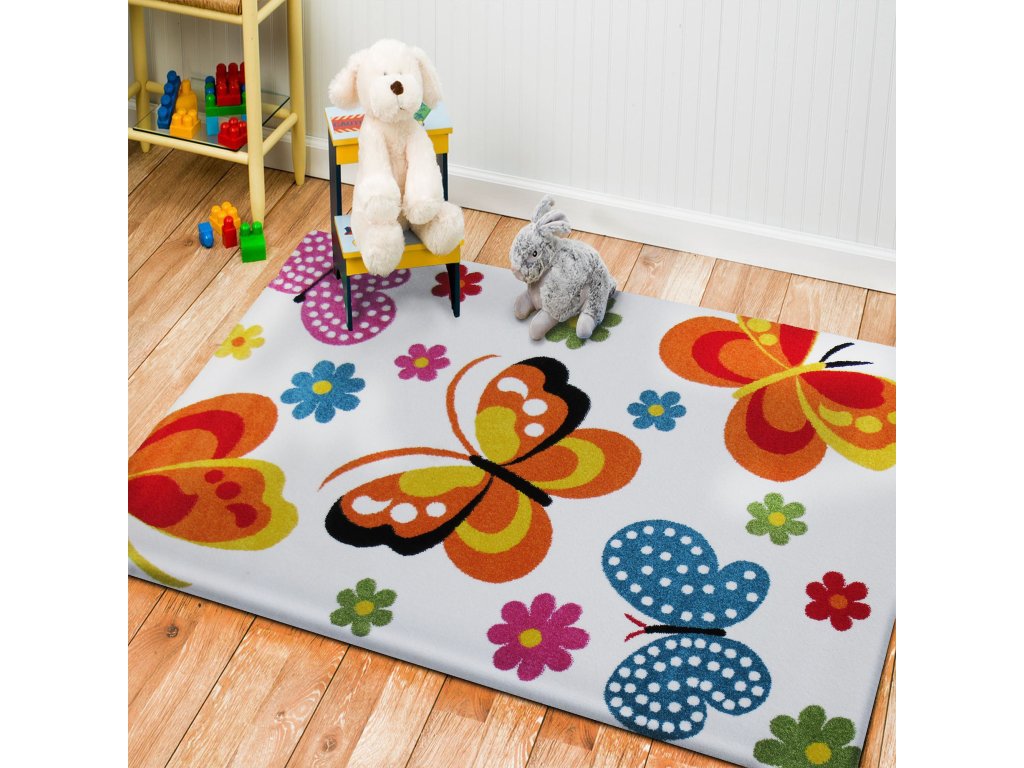 Krémový detský koberec s motívom Motýle 14 z kolekcie Mondo je elegantnou a nadčasovou voľbou do detskej izby. Jemné farebné motýle a kvety na svetlom krémovom podklade pôsobia nežne a vkusne, vďaka čomu koberec ľahko zapadne do každého interiéru.