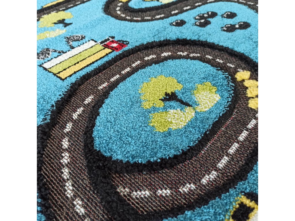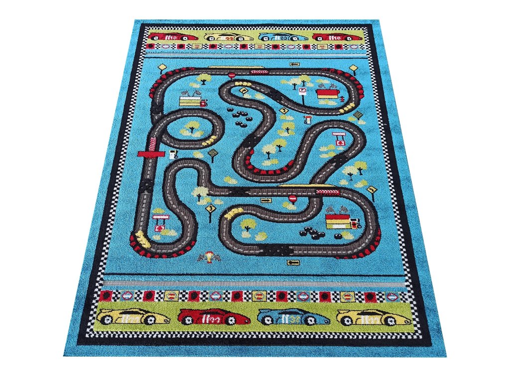 Detský modrý koberec s motívom autodráhy Color Kids 04