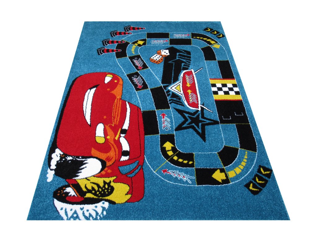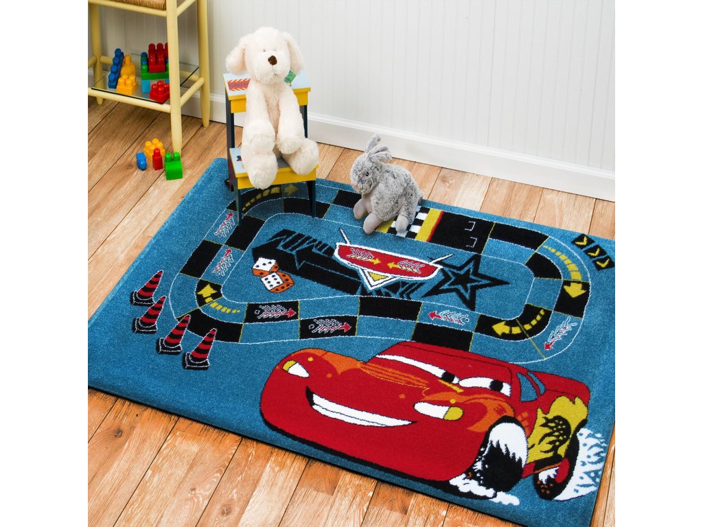Detský modrý koberec s motívom McQueen 06