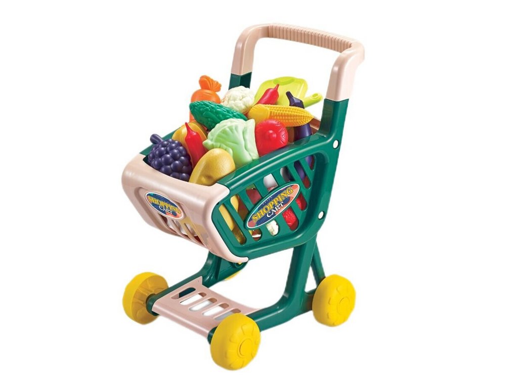Detský nákupný vozík Sada ovocia a zeleniny Zelená