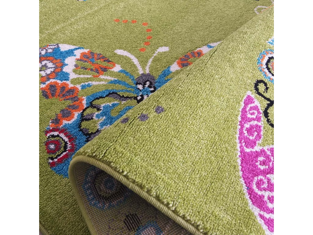 Detský zelený koberec s motýľmi Bella 114